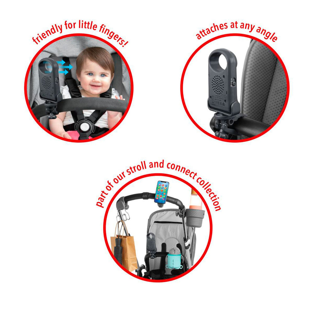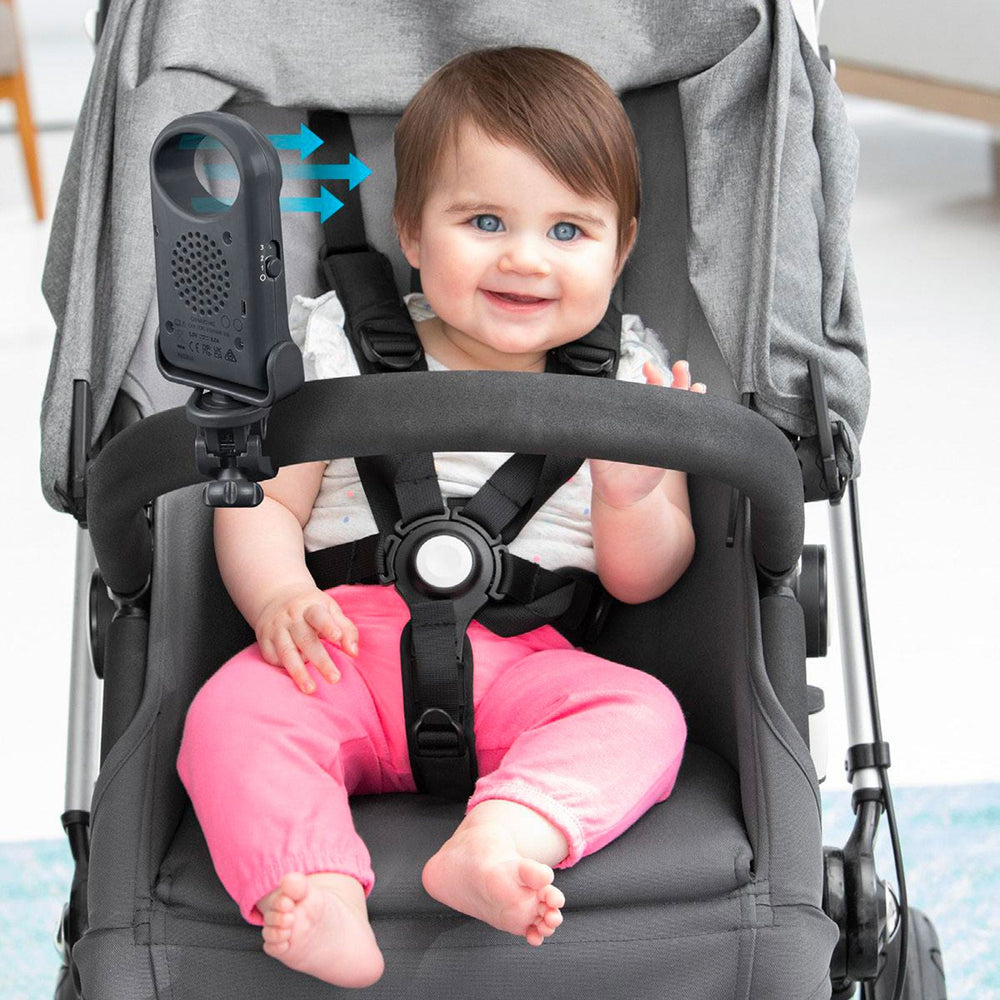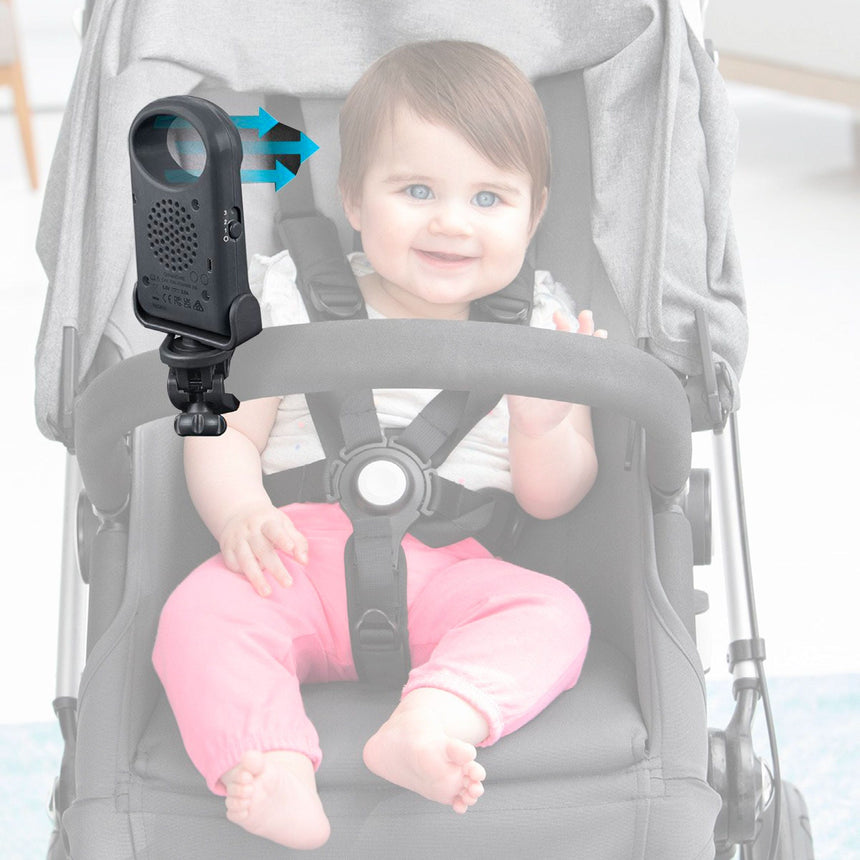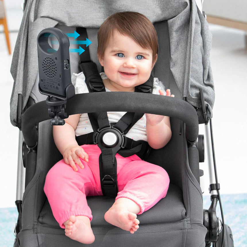 Keeping baby cool is a breeze! Designed to securely attach to strollers with the included universal hub, our bladeless stroller fan is friendly for little fingers and easily adjusts to multiple angles. Featuring three speed settings, the rechargeable design runs for up to six hours for on-the-go convenience.