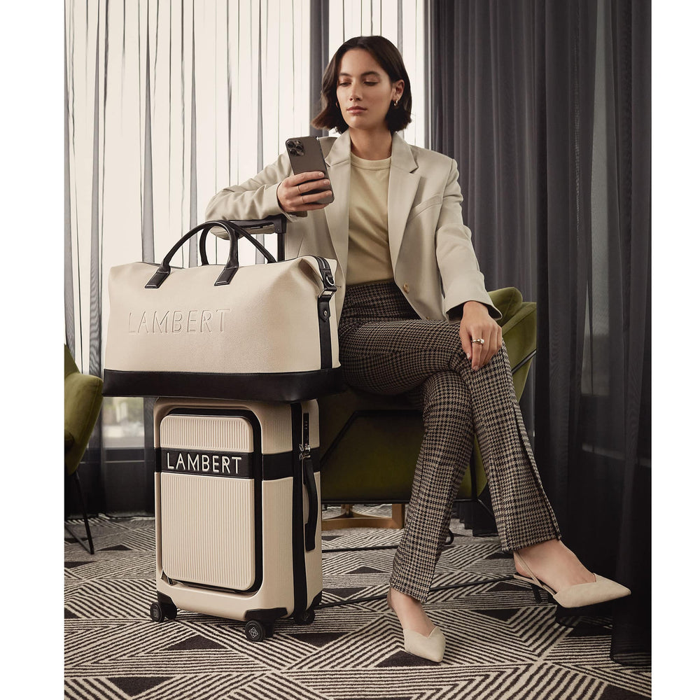 Made of vegan leather, the June is a 2-in-1 travel bag, ideal for all your getaways. Its large size and multiple storage spaces allow for efficient and optimal organization of your belongings. It also features a lined sleeve for a laptop up to 17 inches. Travel with complete peace of mind with this bag, which fits perfectly on the Bali suitcase thanks to the back pocket that converts into a trolley loop.