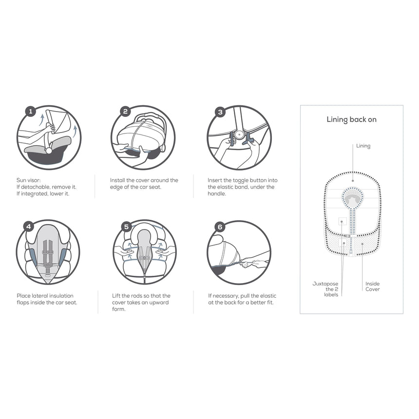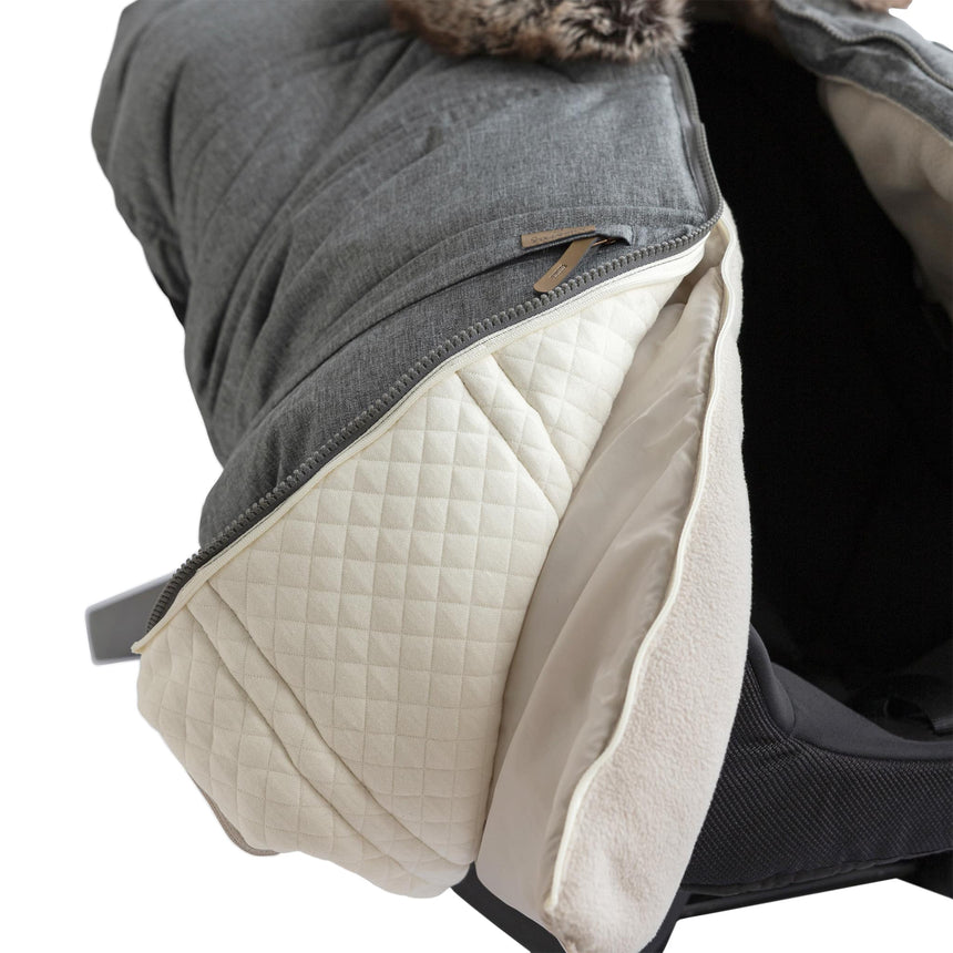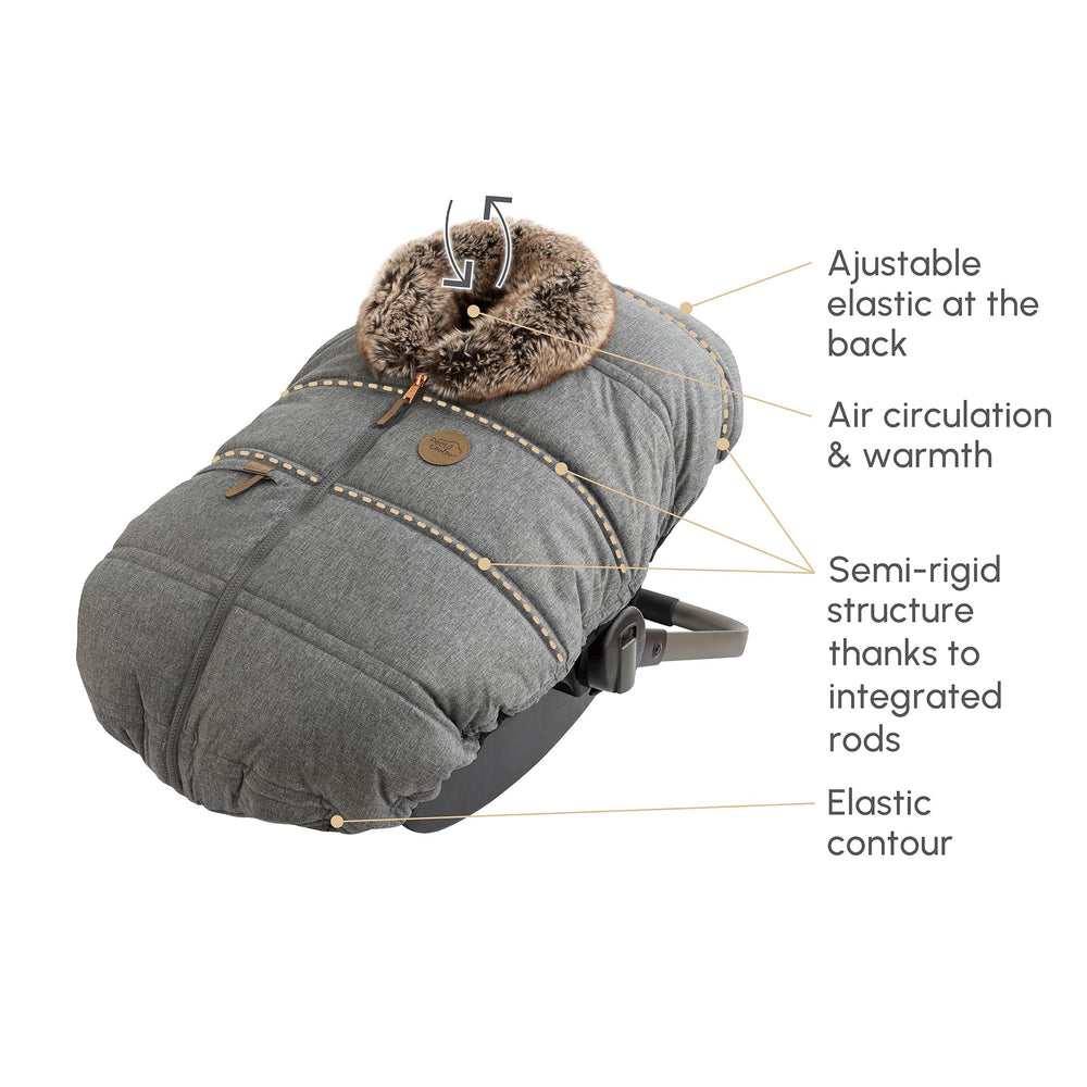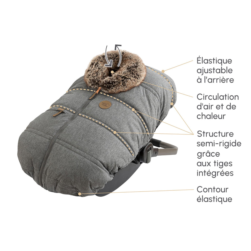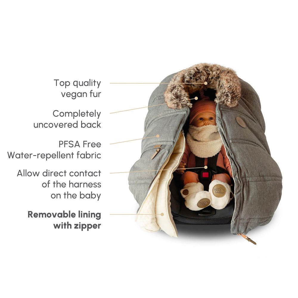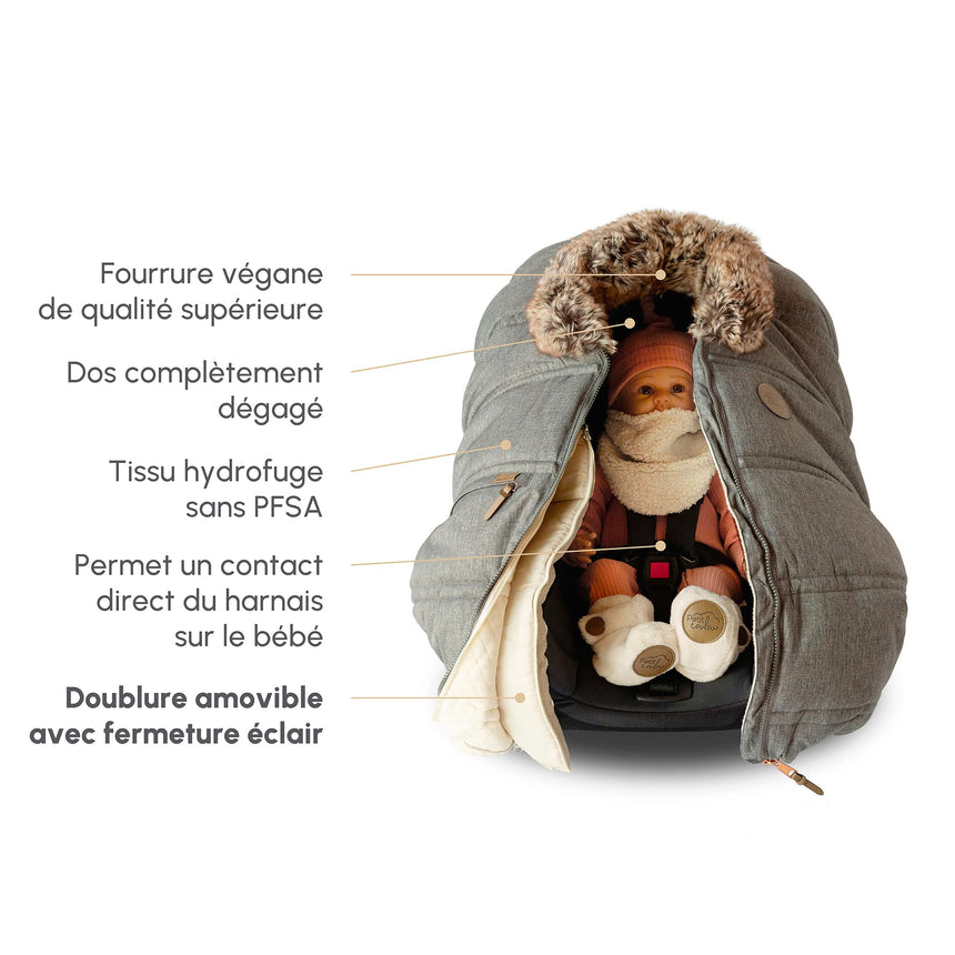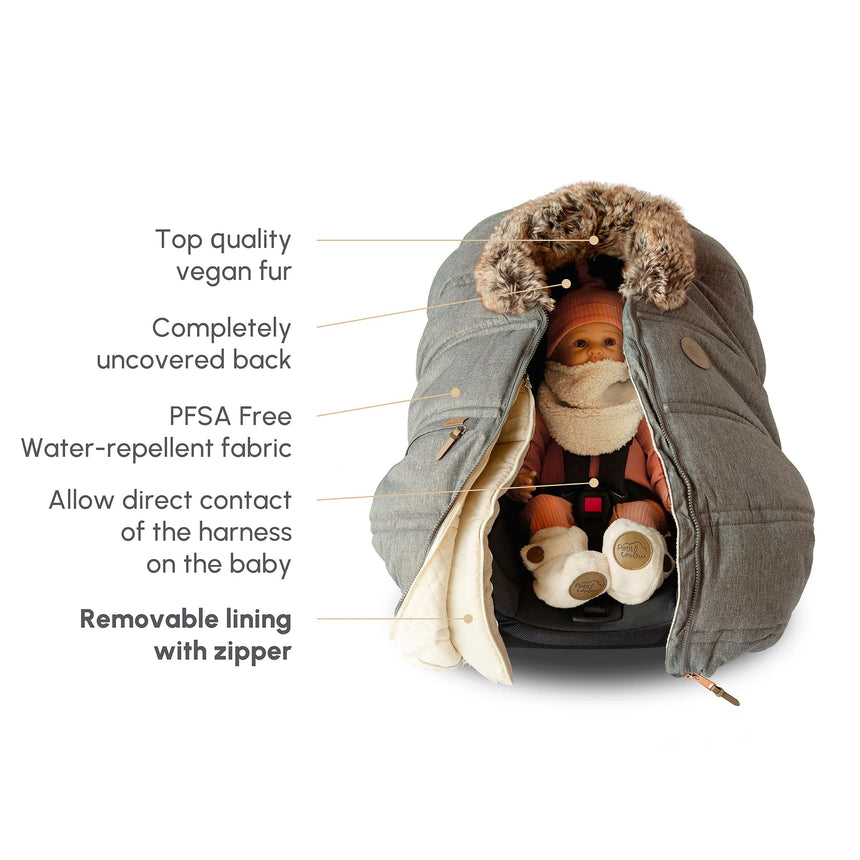 Like a coat with a removable lining, the 3 seasons car seat cover will meet your seasonal needs from September to May. It can be used during the 3 seasons: fall, winter and spring.