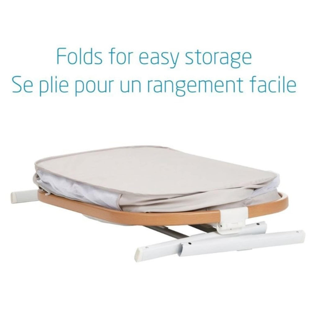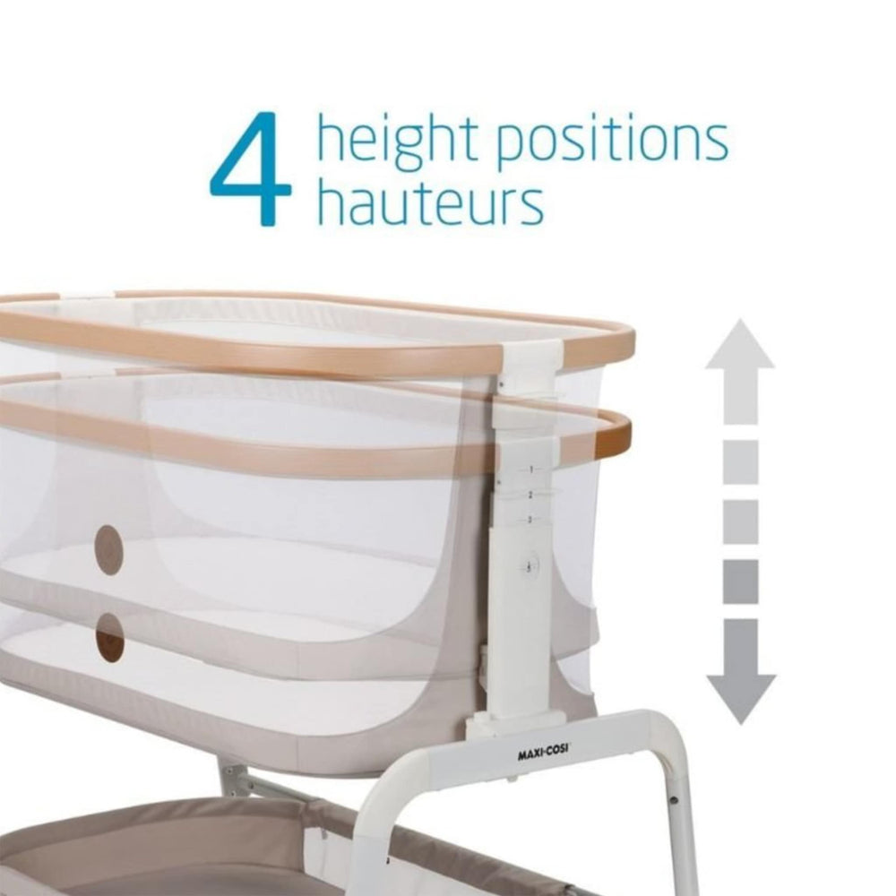Versatility’s important, too. That’s all thanks to the Iora’s 4 different height positions that to give you a customized fit. Not only does the Iora adjust up and down, but side to side as well. For those moments in the middle of the night when your baby wakes up crying, you can easily glide the bassinet closer to the bed to give comfort and care.