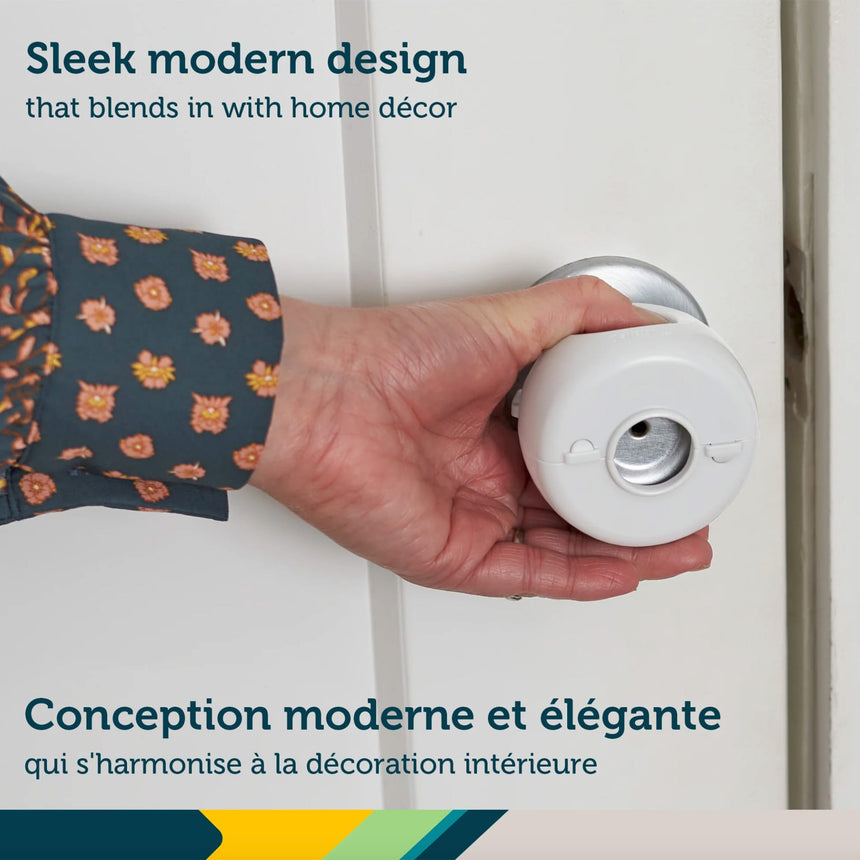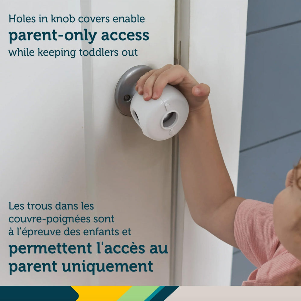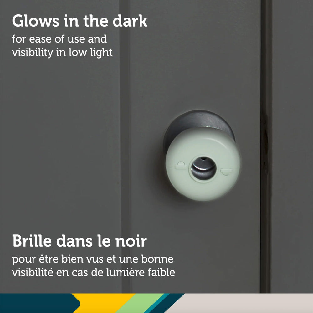 Keep your little explorer out of off-limits rooms with Grip 'n Twist Door Knob Covers. Designed to fit standard door knobs, these covers feature grip holes for easy parent access and blend seamlessly with your home décor. The covers emit a soft glow in the dark, making them easy to find and use at night. This pack of three provides childproofing for multiple doors, ensuring both safety and convenience.
