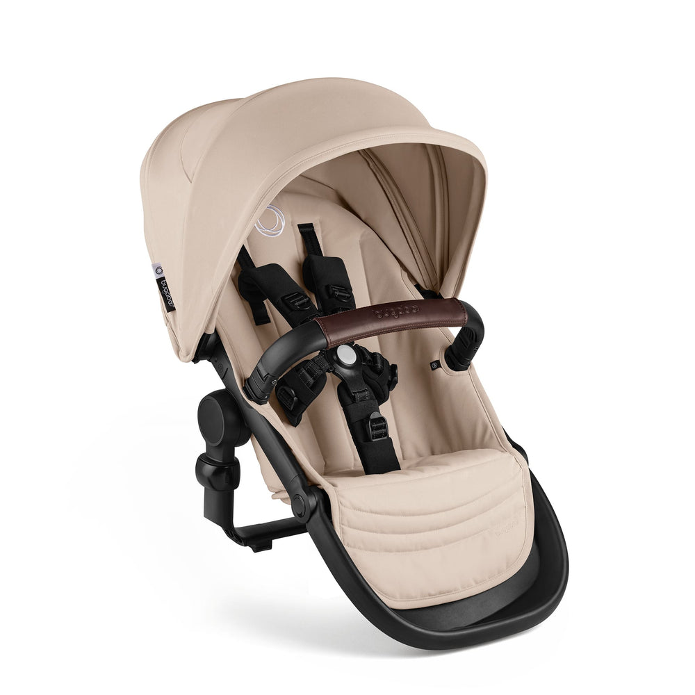 What is in the box: This item contains the Bugaboo Kangaroo sibling seat including a seat frame, seat hardware, foot rest, rotating carry handle, seat fabric, reflective comfort harness, canopy wires, canopy clamps, sun canopy fabric and lower sibling adapters.