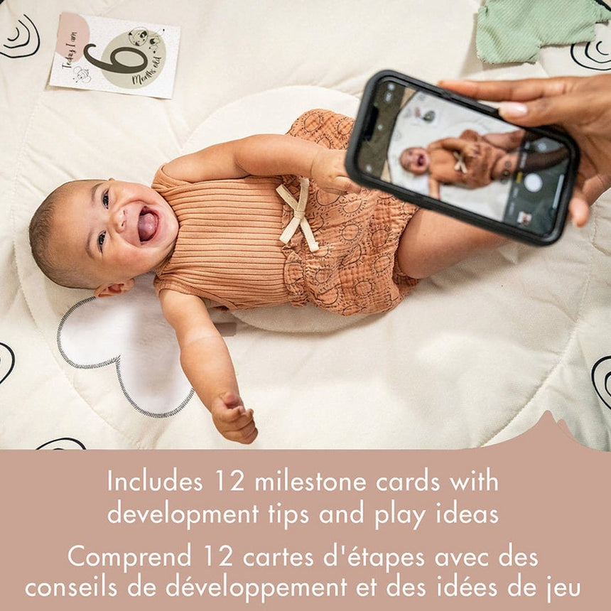 The Gymini also comes with 12 milestone cards with helpful development tips, fun playtime ideas, and ways to capture and share precious moments throughout the first exciting year.