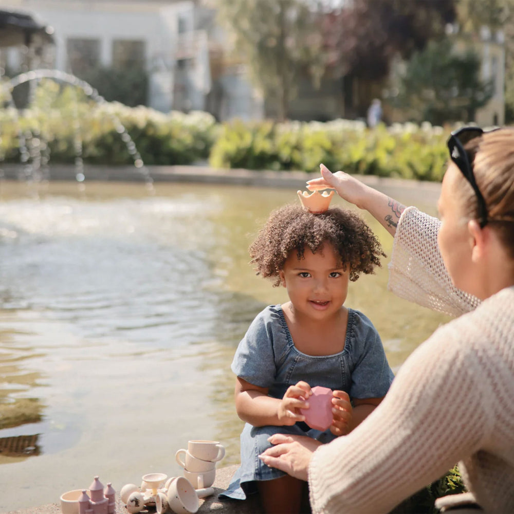 Make a splash at bathtime with the princess bath play set that includes a crown, castle, heart gem and bear princess. Made from 100% food grade silicone, the soft material is easy for little hands to hold while wet or dry. Its inventive design allows each toy to open into two separate pieces for thorough cleaning and fast drying. This feature allows the toys to remain mold-free with its easy-to-clean pieces that are dishwasher safe.