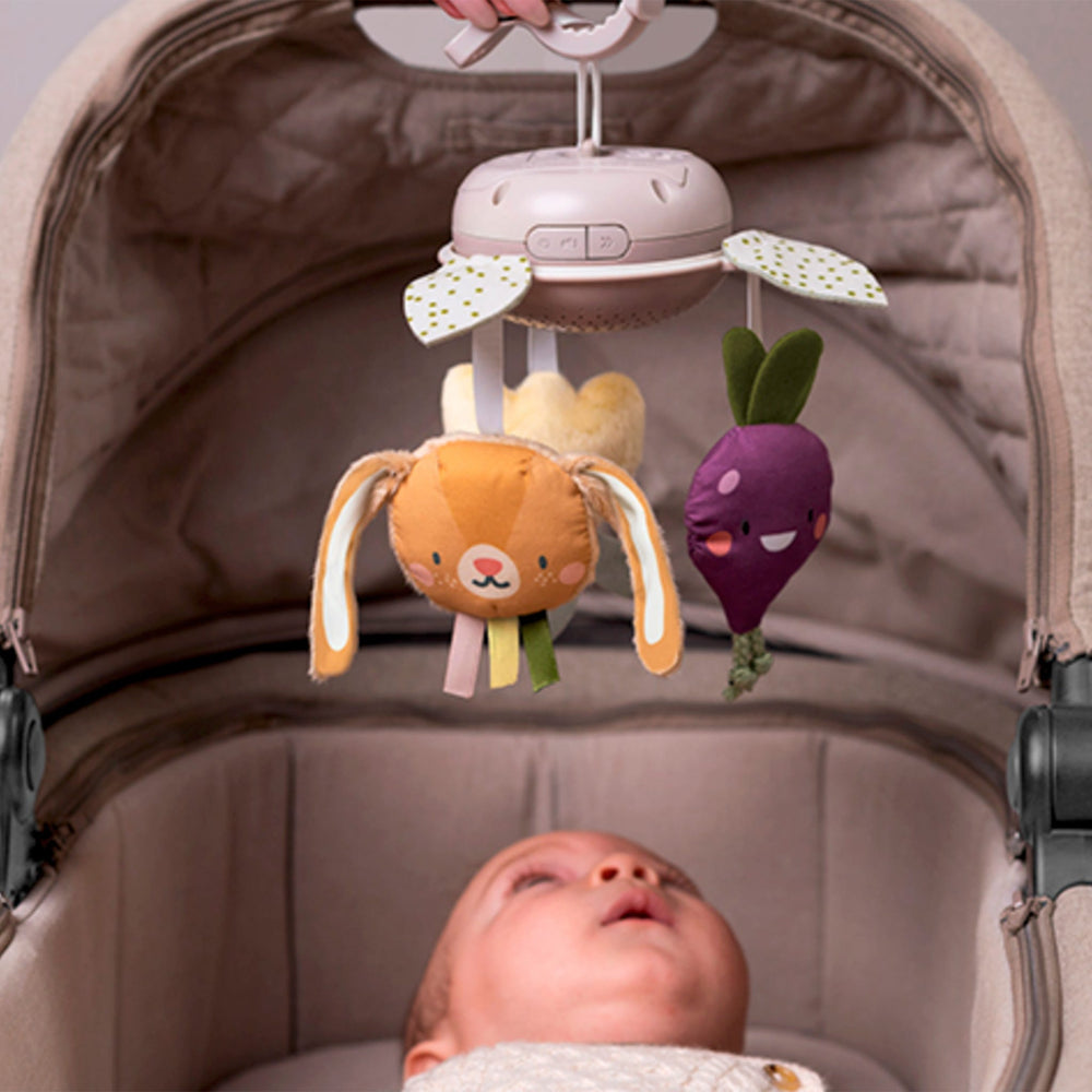 Enhance baby’s emotional and cognitive development with our Garden musical mobile on the go. Designed to captivate baby’s senses and foster curiosity, it offers a delightful and interactive experience. Crafted with exceptional quality materials, our musical mobile is not only user-friendly but also perfect for outdoor use. Whether you’re on a car ride or taking a stroll with your little one in the stroller, it creates a soothing and stimulating atmosphere, ensuring your baby remains content and engaged throughout your adventures.
