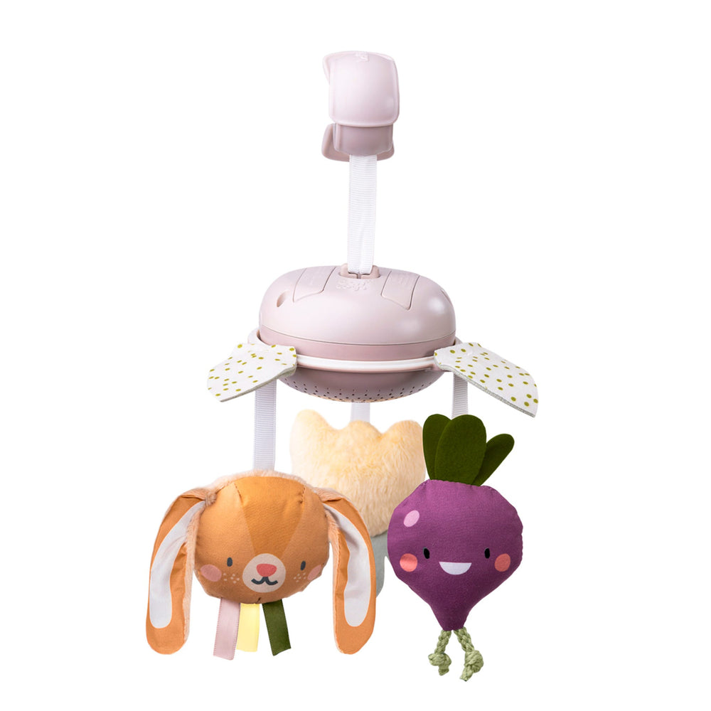 Includes 3 adorable hanging toys from our “Urban Garden collection” – Jenny the bunny, Tuli the flower, and a colorful beet with green leaves to capture baby’s attention and become their favorite playmates.