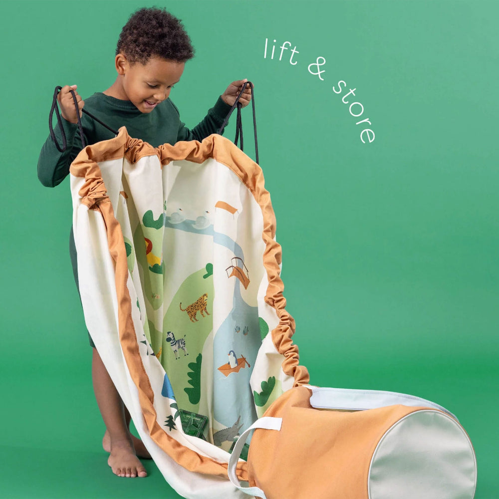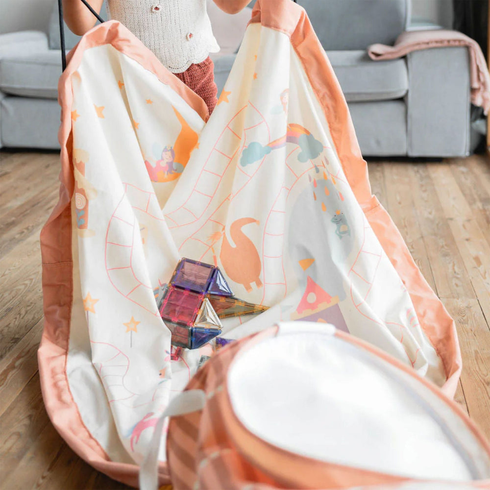 When playtime is over, simply pull the strings and it transforms into a practical storage basket that keeps everything neatly in place.