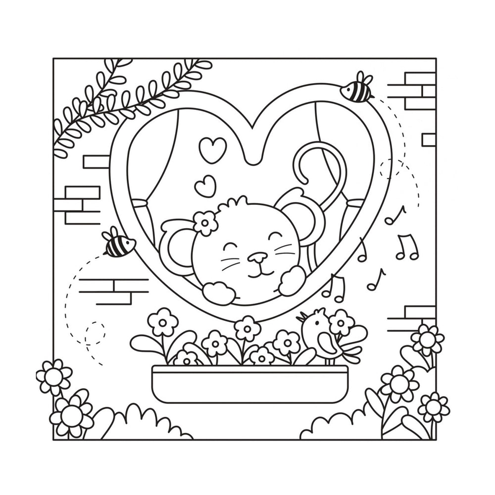 - Thirty warm, love-themed illustrations to color for relaxation.