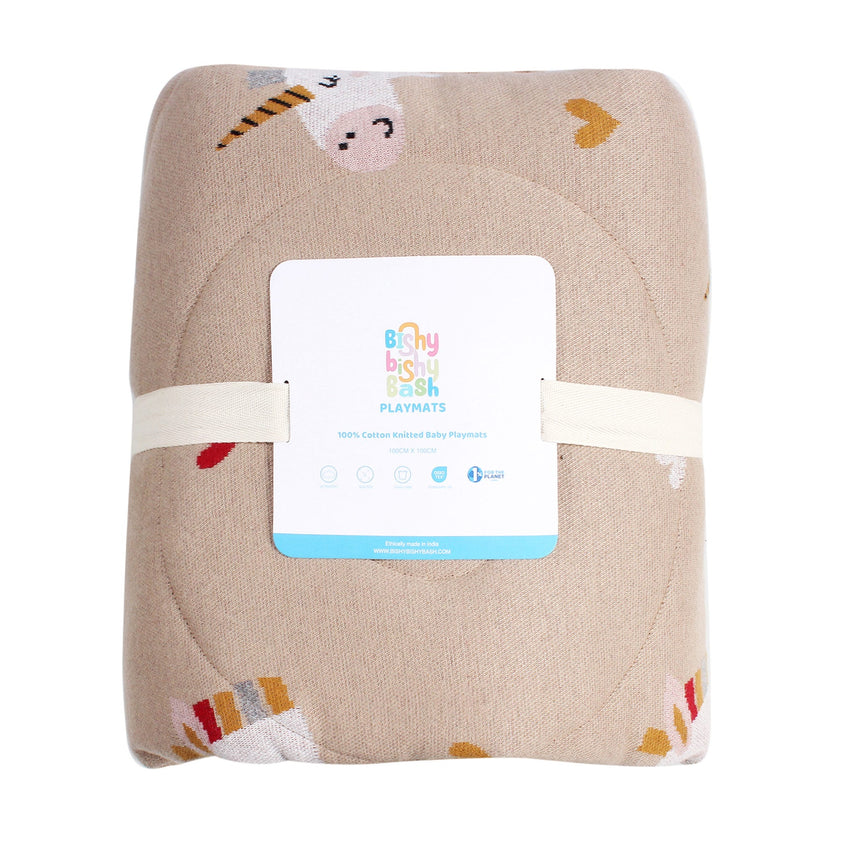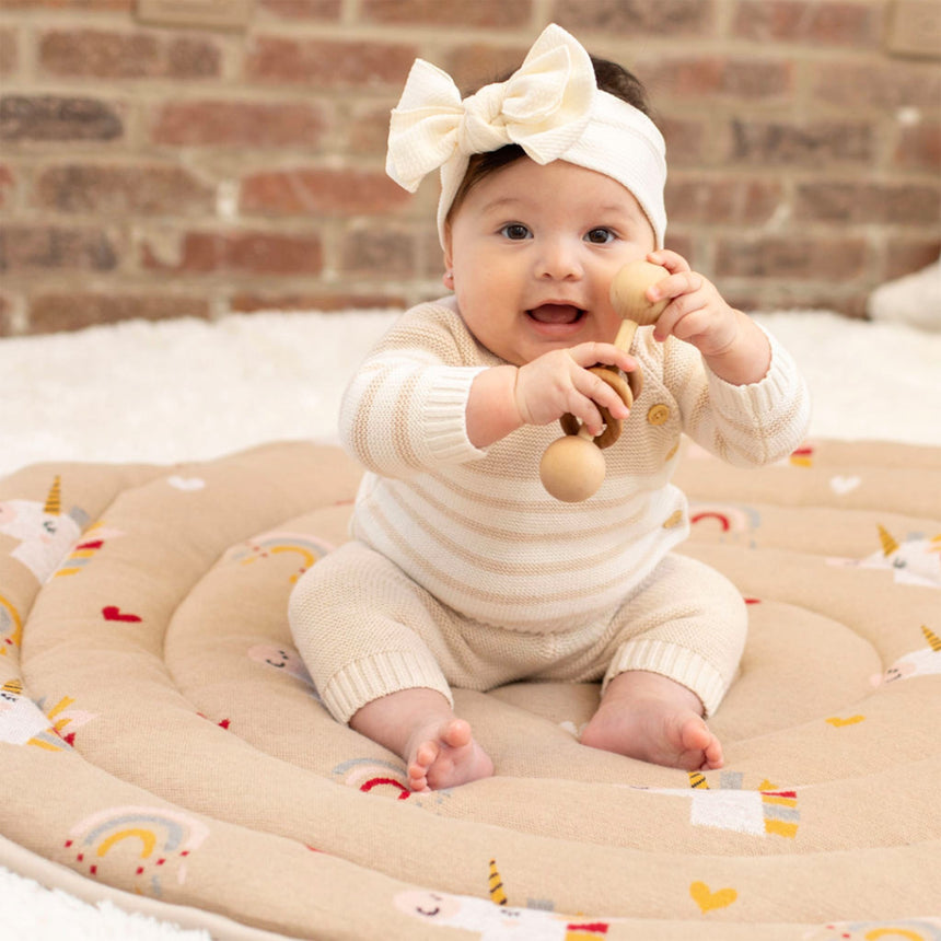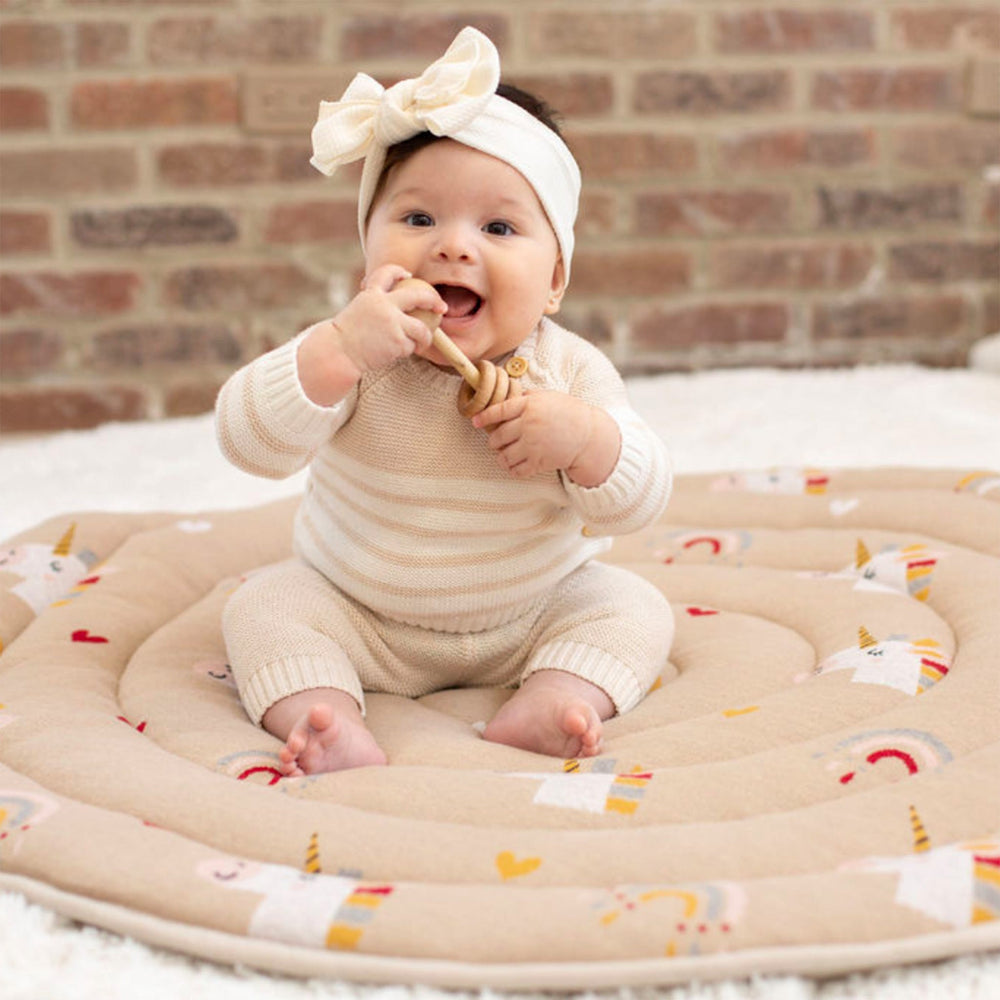 Create a safer, softer, snugglier playtime with this 100% cotton knit playmats. This adorable quilted mat is perfect for tummy time and invite a comforting warmth to your baby’s nursery, your living room or play space!