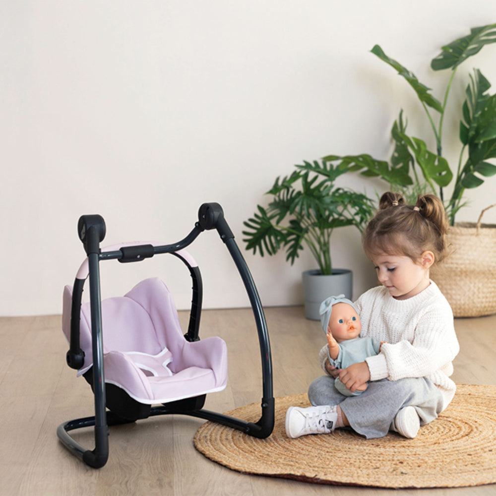 With its high chair including a feeding tray, its swing, and its car seat, everything is included to take care of a baby doll like a real mom or dad. From mealtime to nap time, many play possibilities await!