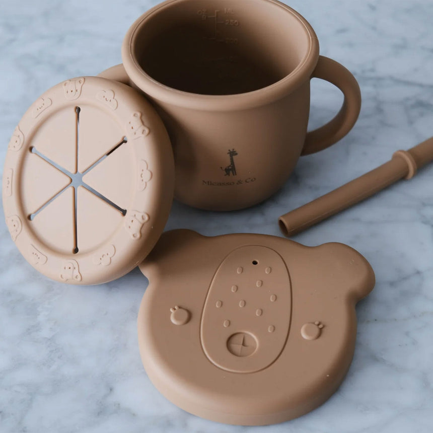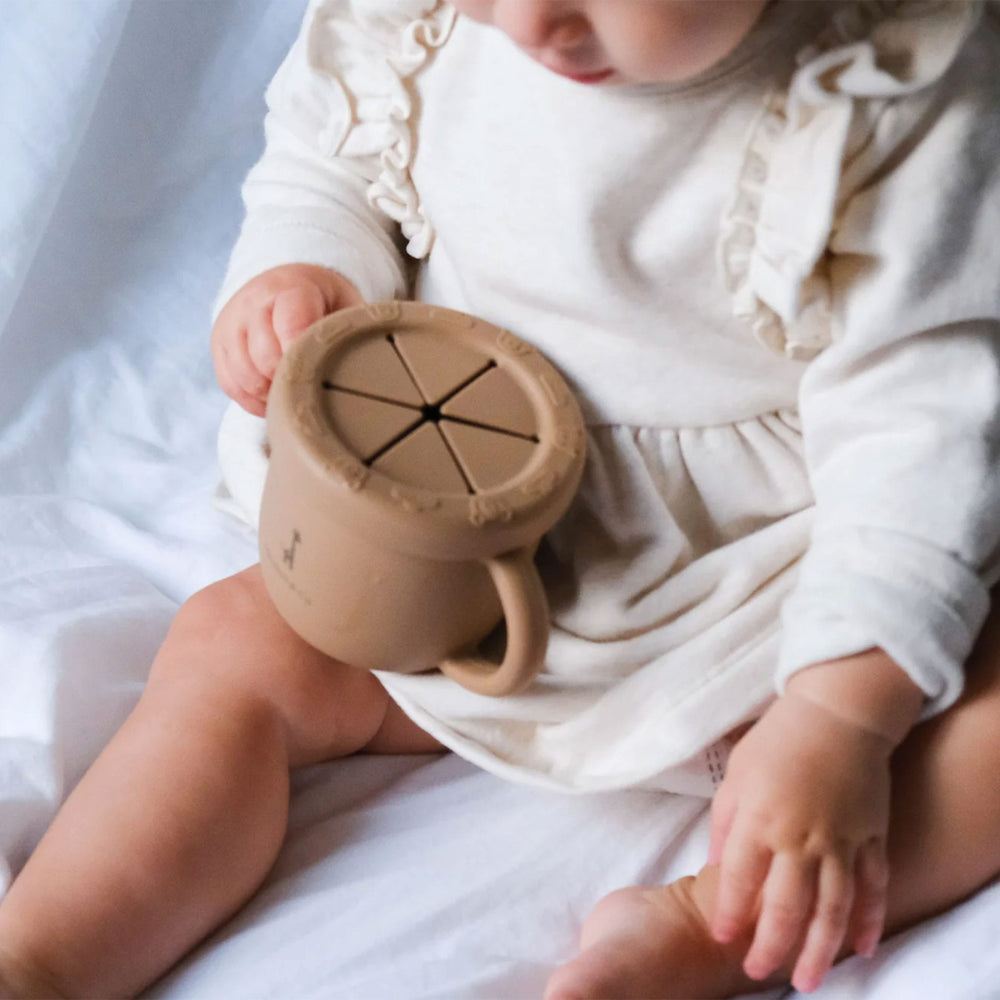 The Micasso & Co 2-in-1 silicone cup is strong, durable, and designed to minimize spills. Its removable lid stays securely in place yet is easy to clean. Use it as a training cup or a snack container—an everyday essential and a perfect gift idea.