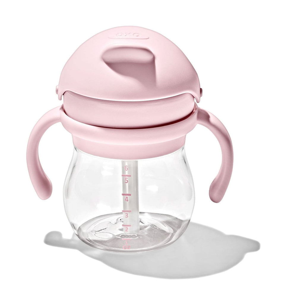 A great option for tots ready to use a straw, the 6 oz. Tot Transitions Straw Cup with Removable Handles features an almond-shaped straw that conforms to baby’s mouth for less mess. The unique straw valve opens as soon as a tot’s lips touch for easy drinking. Plus, the hinged cap closes to create a leakproof seal and protect the spout when not in use. The removable handles provide a comfortable grip for your little one, and the cap and straw are removable for easy, thorough cleaning.