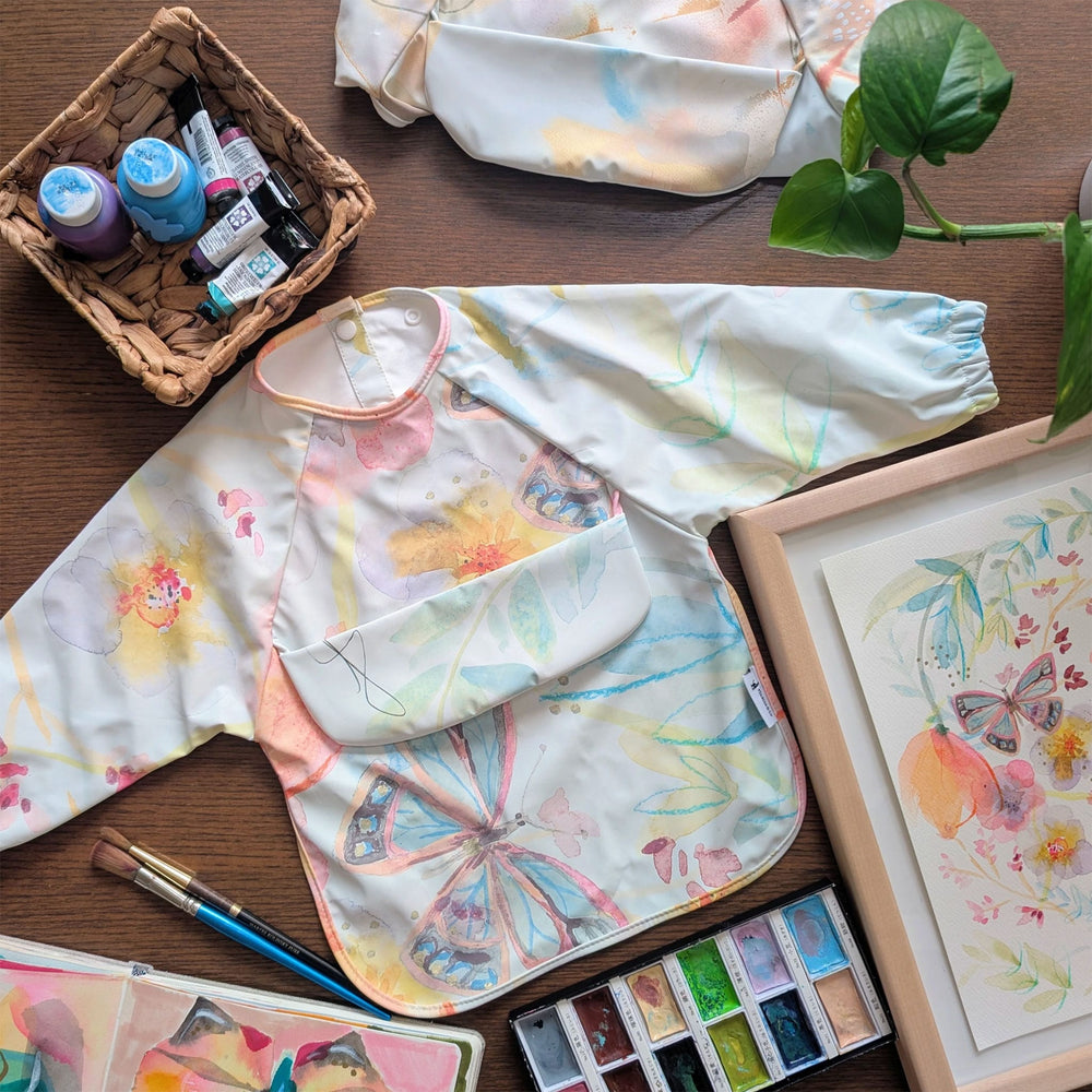 The Micasso & Co long sleeve bib is designed to meet the needs of young children. Its practical pocket, placed at the right height, allows to catch the food that could fall during use. Every detail has been thought of to offer you the perfect bib.