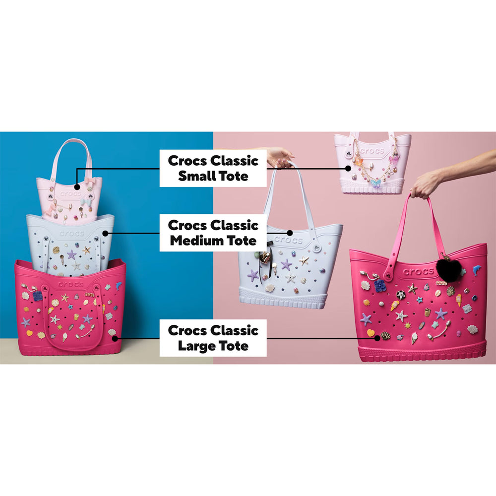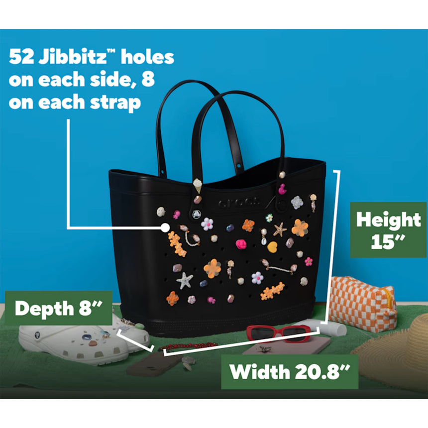 Why choose an ordinary tote bag when you can personalize it with your own unique style? Perfect for carrying your essentials to the pool, beach, park, or anywhere else, the Crocs Tote Bag is durable, spacious, and as iconic as their clogs. The best part? You can add Jibbitz™ charms to make it a unique bag, truly unlike any other. Style, functionality, personality... and all your stuff? It's in the bag!