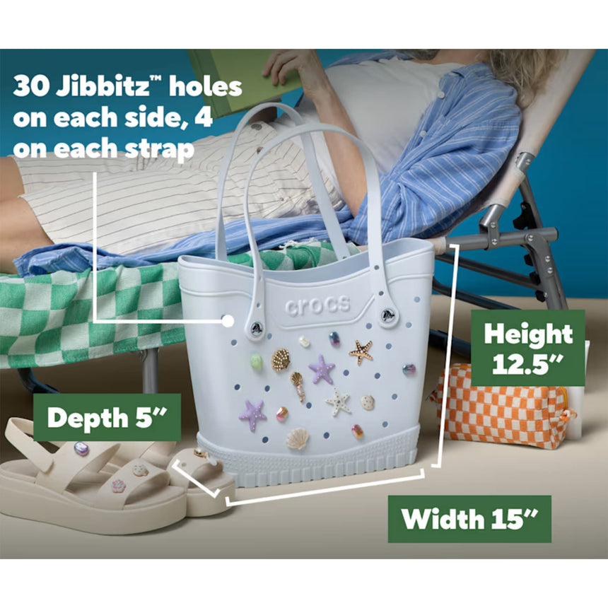 - Personalize it with Jibbitz™ charms! 30 holes on each side and 4 on each handle