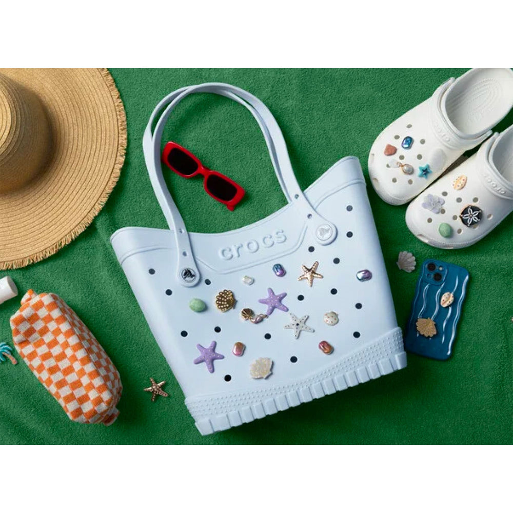 Why choose an ordinary tote bag when you can personalize it with your own design? Discover the Crocs Classic Medium Tote, perfect for carrying your essentials to the pool, beach, park, or anywhere else. Like all Crocs bags and totes, it's durable, spacious, and as iconic as their clogs. The best part? You can add Jibbitz™ charms to make it a unique bag, truly unlike any other. Style, functionality, personality... and all your stuff? It's in the bag!