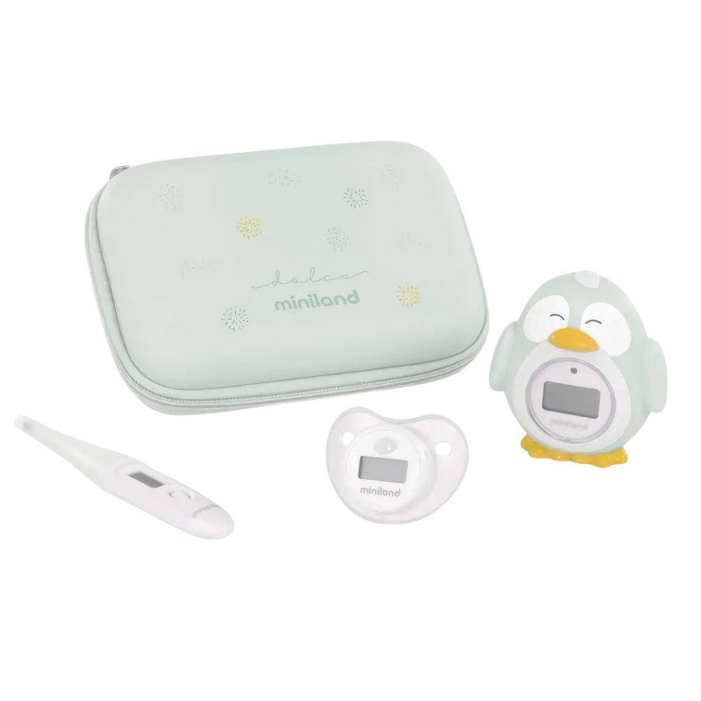 It includes three thermometers: a body thermometer with a flexible tip, a lollipop-shaped thermometer and another for the bath. Its user-friendly design makes it the ideal gift kit. Everything is stored correctly and organized.