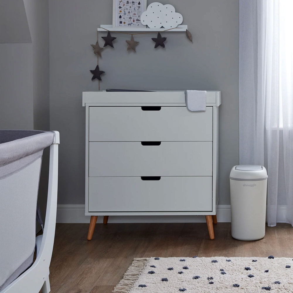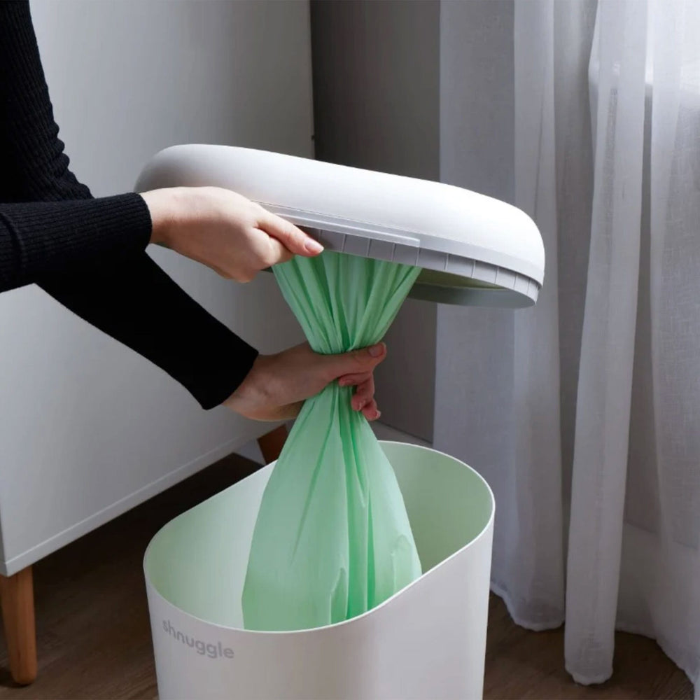 The Shnuggle Eco-Touch Nappy Bin is thoughtfully designed to make nappy changes simpler, more hygienic, and environmentally friendly. With its one-handed 'drop and go' operation, dual-seal odour airlock, and cassette-free system, it ensures that nappy disposal is both convenient and sustainable.