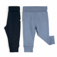These light blue and navy pants are easy to throw on over a onesie for a quick outfit. Easy to wear and designed with comfort in mind, each pant features a wide waistband that folds over so kids grow comfortably and their belly buttons are protected.