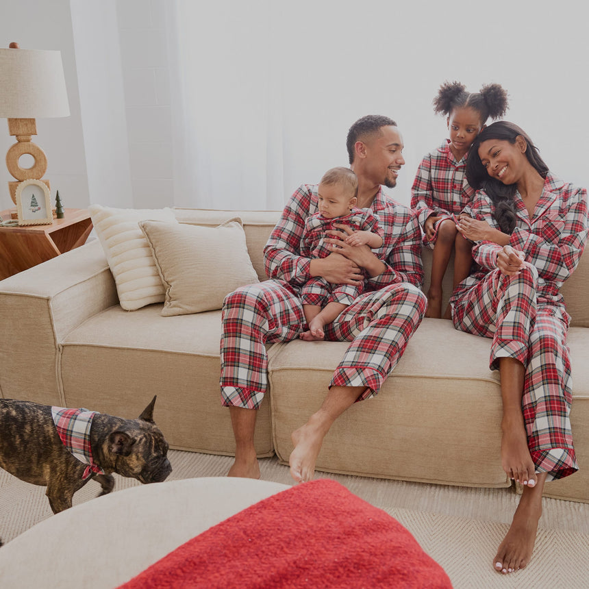 Classic and cozy, this red tartan sleepsuit is perfect for Christmas morning. Made from soft flannel, it’s the snuggest fit of the season and there are matching pieces for the rest of the family. The timeless piece has snap buttons along the legs for quick changes before diving back into the festive fun.