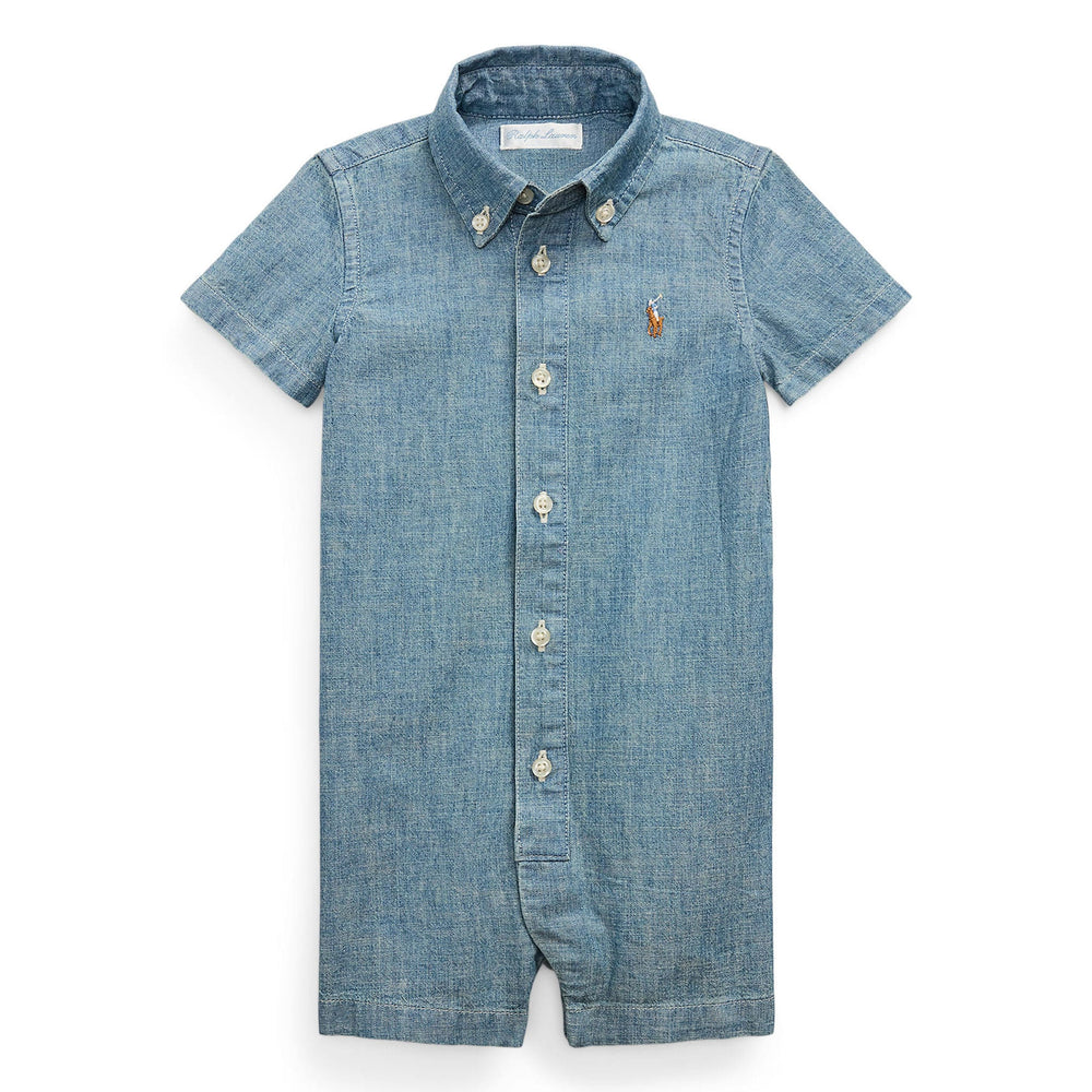 This shortall achieves a classic Polo look with indigo-dyed chambray and our multicolored signature Pony.