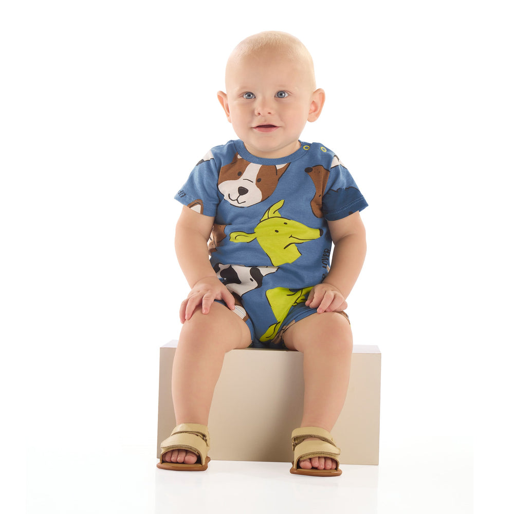 Dogs Blue Romper 3-18m