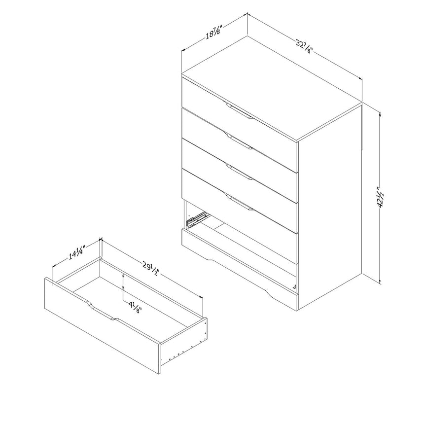 Practical Storage And Organization With tall, stacked drawers, this dresser from the Holland Collection was designed just for tighter spaces! Featuring 5 large drawers with detailed metal handles, the dresser provides plenty of room for clothes, linens or general storage keeping your space organized and neat. Included with metal slides for easy and quiet use, there's no wrestling required to access your belongings.