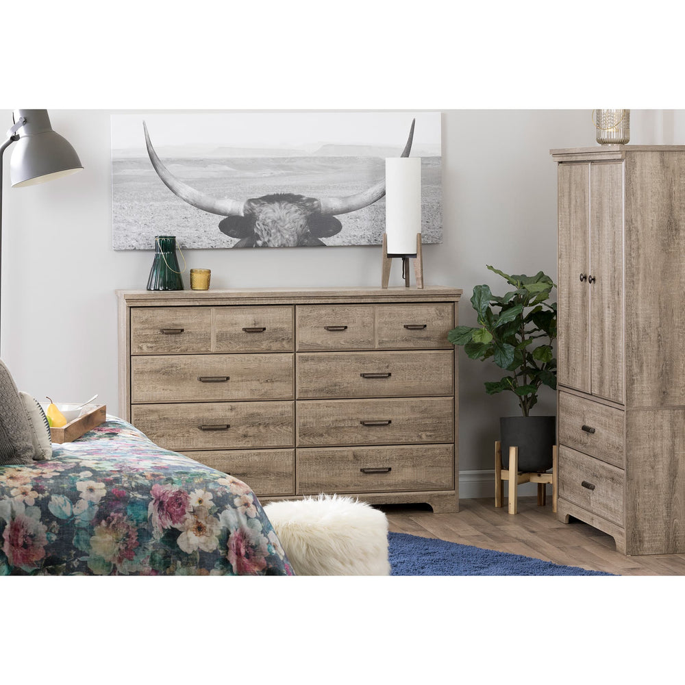 8-Drawer Double Dresser - Versa Weathered Oak