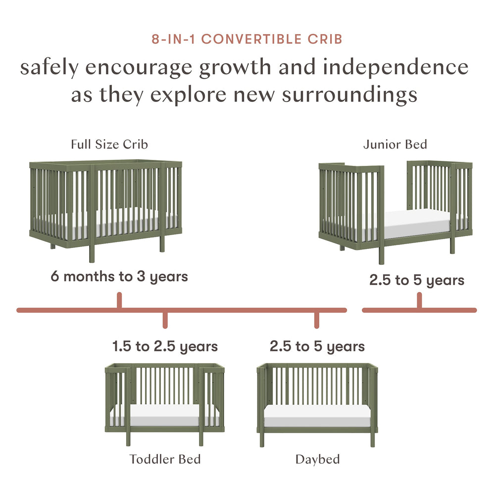 Pogo 8-in-1 Convertible Crib with All-Stages Conversion Kits - Olive