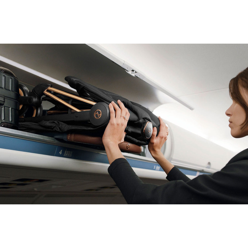 -CARRY-ON COMPATIBLE. The COŸA features a compact fold allowing it to be easily stored in an overhead compartment or car trunk.