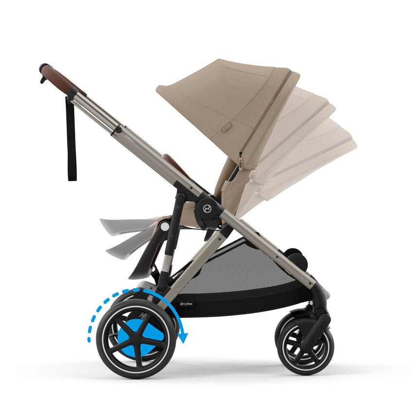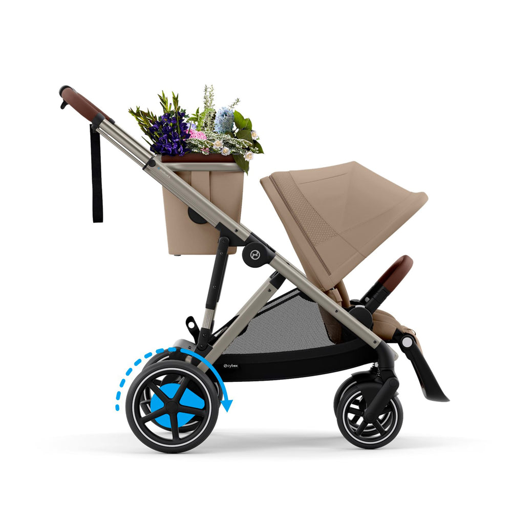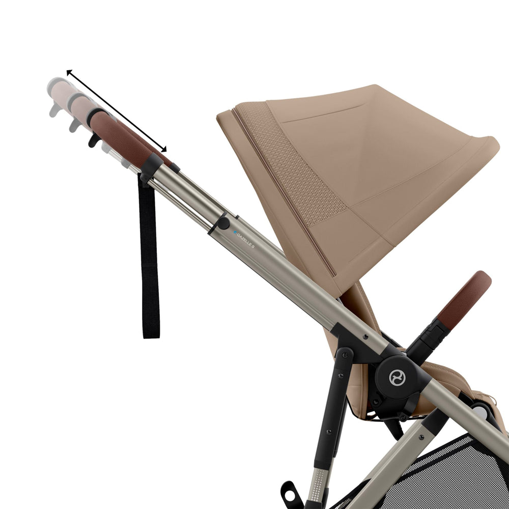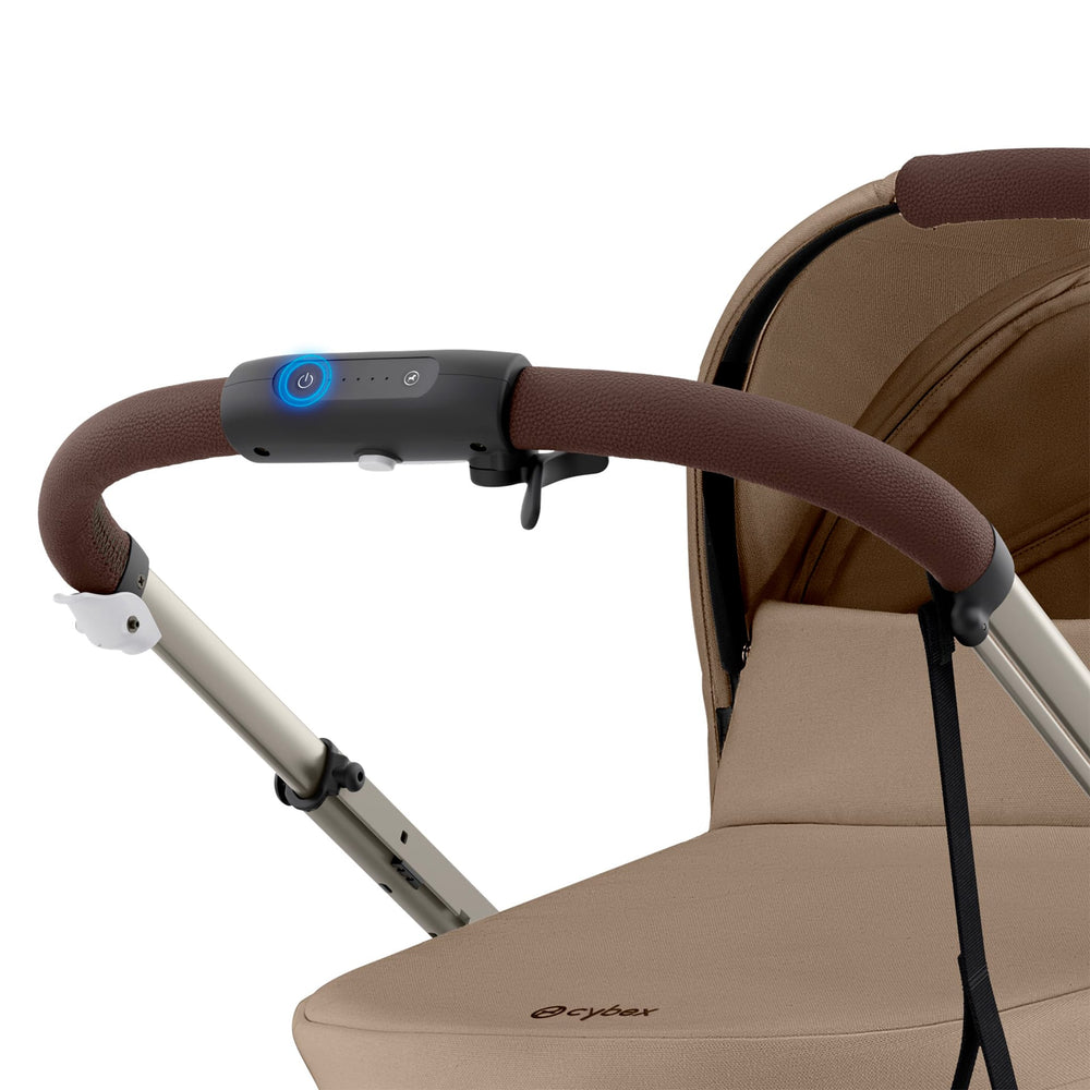 A stroller for all your adventures ahead. The CYBEX e-Gazelle stroller combines adaptability and convenience with the electric power of smart technology. Conquer any uphill climb or downhill descent and cruise through any uneven terrain effortlessly with the assistance of our electronic power on demand. Adapting to the changing needs of your family, the e-Gazelle is designed to support 20+ different configurations and easily converts from a single to double stroller. Whatever your plans are for the day, you can rely on the shopping basket and spacious lower basket for up to 55lbs. of groceries or any essentials for the journey ahead. After a long busy day, use our gentle rocking feature to help calm and soothe your child.