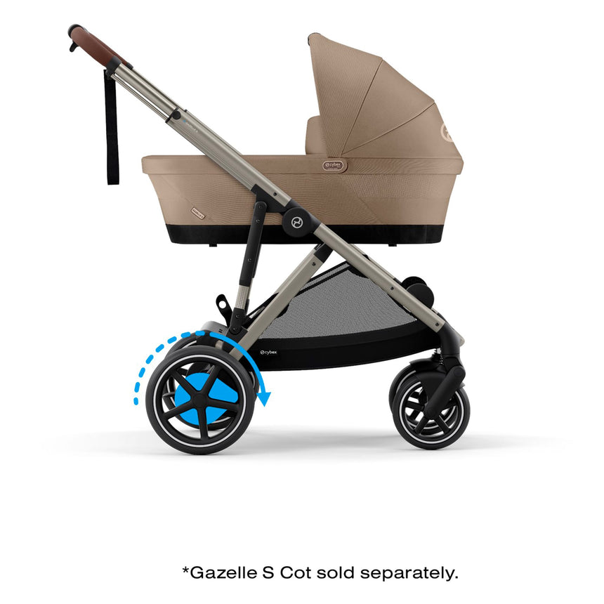 TRAVEL SYSTEM READY: Versatile 3-in-1 Travel System with the seat unit, Gazelle S Cot (sold separately), and any CYBEX Infant Car Seat (sold separately) using the included adapters