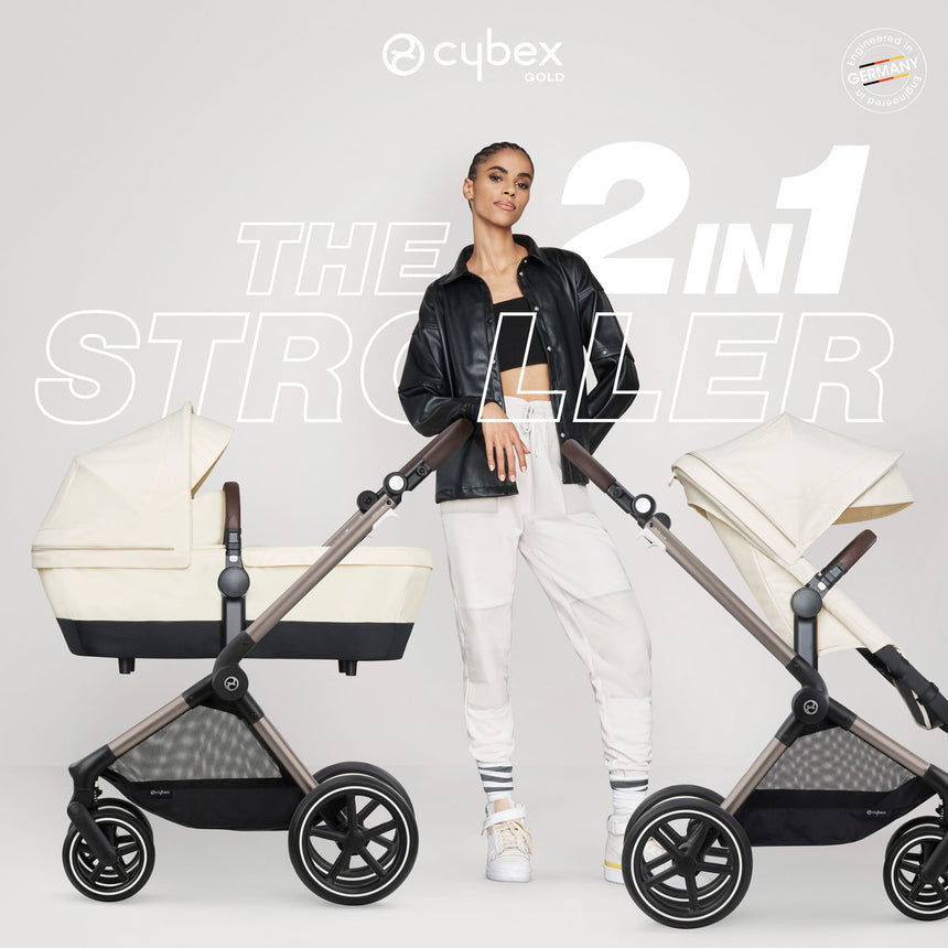 A constant companion throughout the adventure of childhood, the CYBEX EOS Lux is a perfectly streamlined 2-in-1 stroller for your growing family. A complete travel solution from birth, it features a 2-in-1 seat unit that easily converts from lay flat “Carry Cot Mode” for your newborn to a reversible toddler seat when your child grows bigger – simply swap the soft fabric components on the frame and you’re out the door. When it’s time to hit the road, attach any CYBEX infant car seat with the included adapters to create the ideal travel system complete with all-terrain wheels, front wheel suspension and an oversized shopping basket. With this versatile frame, the transition from drive to stroll is child’s play!