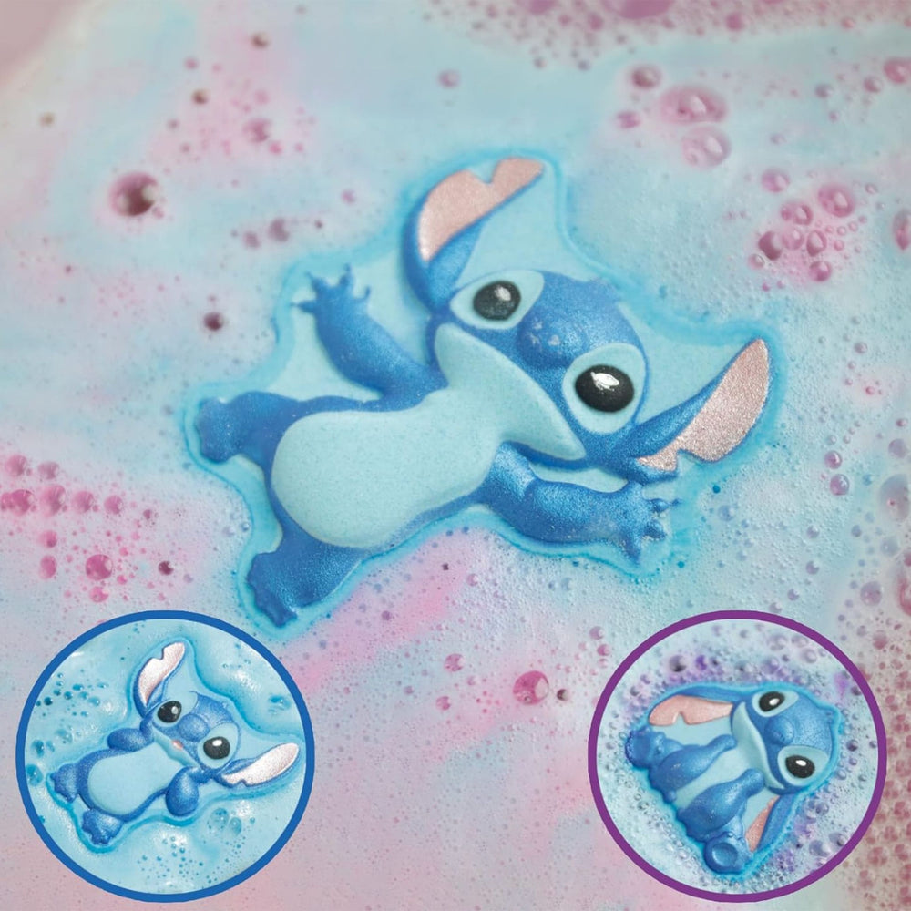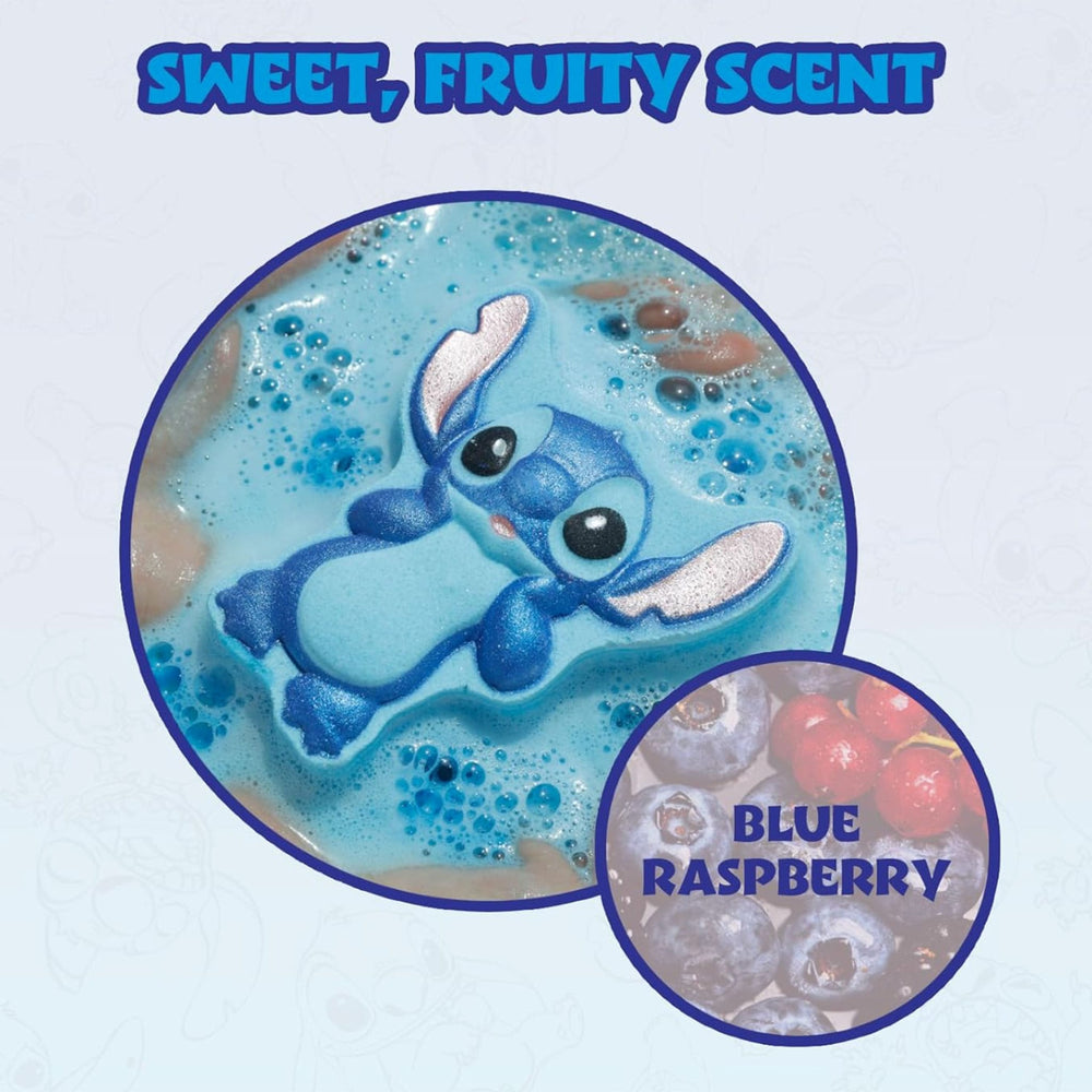 Delight in a trio of 100 grams blue raspberry-scented, beautifully painted molded bath bombs. Each bath bomb features a different pose of everyone’s favorite Experiment 626, each releasing a different color once it hits the water, bringing a touch of magic and mischief to bath time.