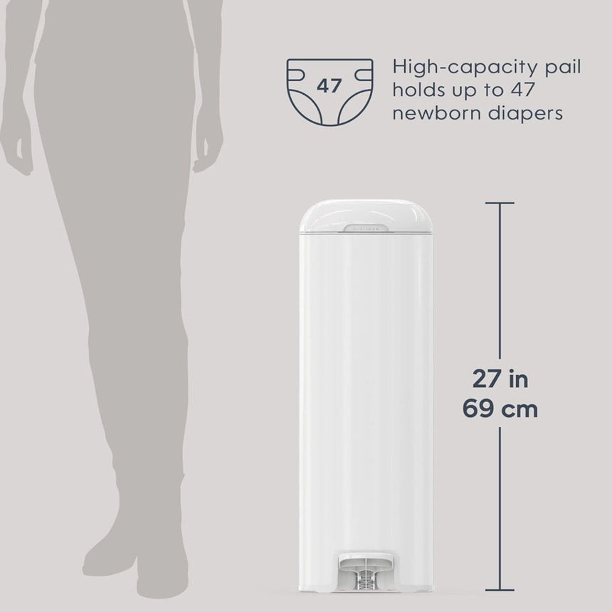 -Optimal convenience - the trash can is equipped with a foot pedal for hands-free use. Large drainage opening with a large capacity of 47 newborn size diapers.