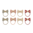 Made from the softest velvet, these Tinkerbell velvet bow mini ponies shine with a metallic gold wrap at the centre. Available in charming shades of soft pink, grey, and cream, they add a stylish pop of colour that brightens any hairstyle with a playful touch.