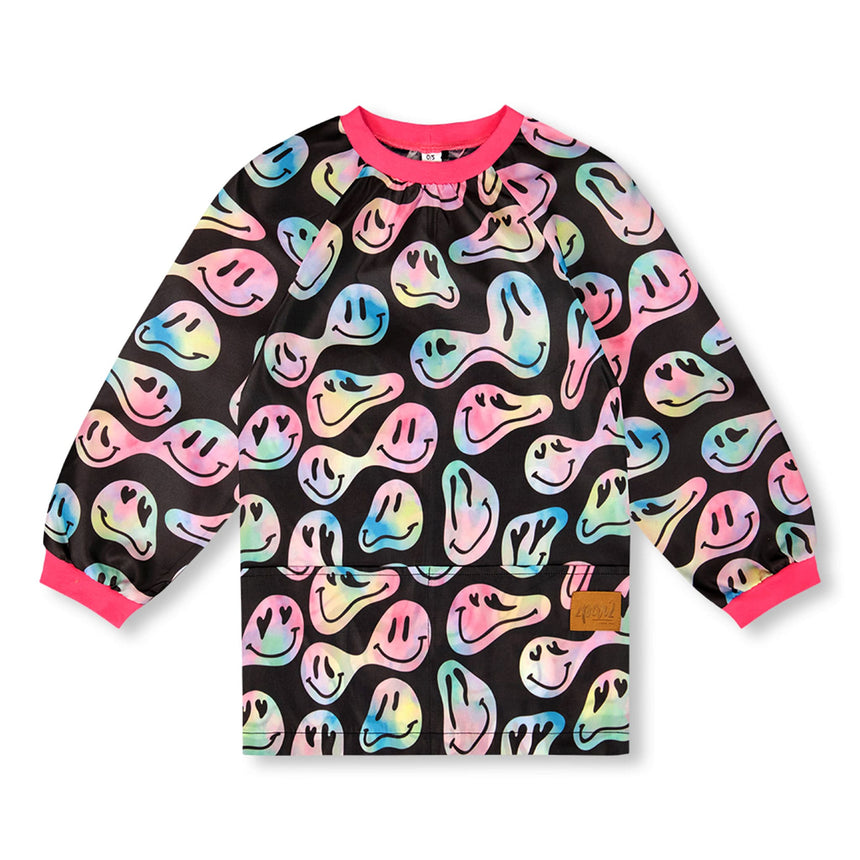 Make art class your most stylish moment of the day with our green cat print smock. In fabric made from recycled plastic bottles, this eco-friendly school apron features a long raglan sleeve silhouette with double front pockets, a round neckline, elasticated wrists, and a water-resistant finish..