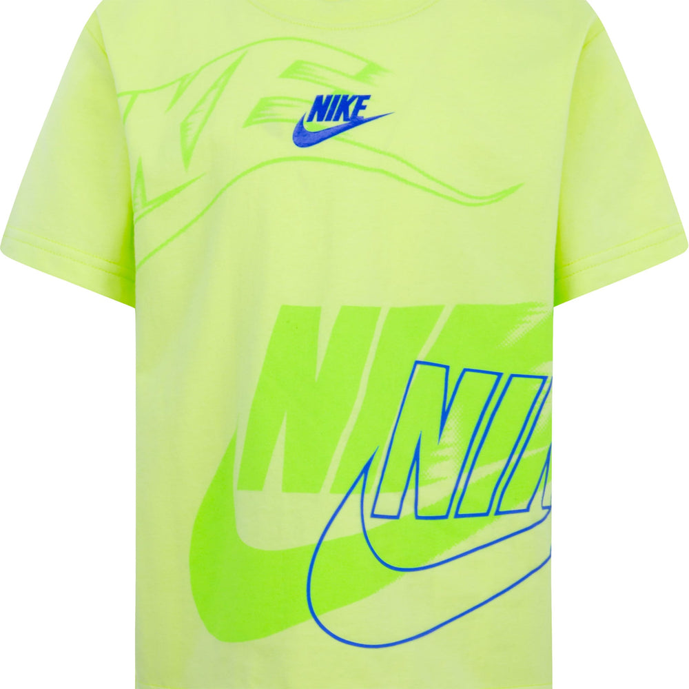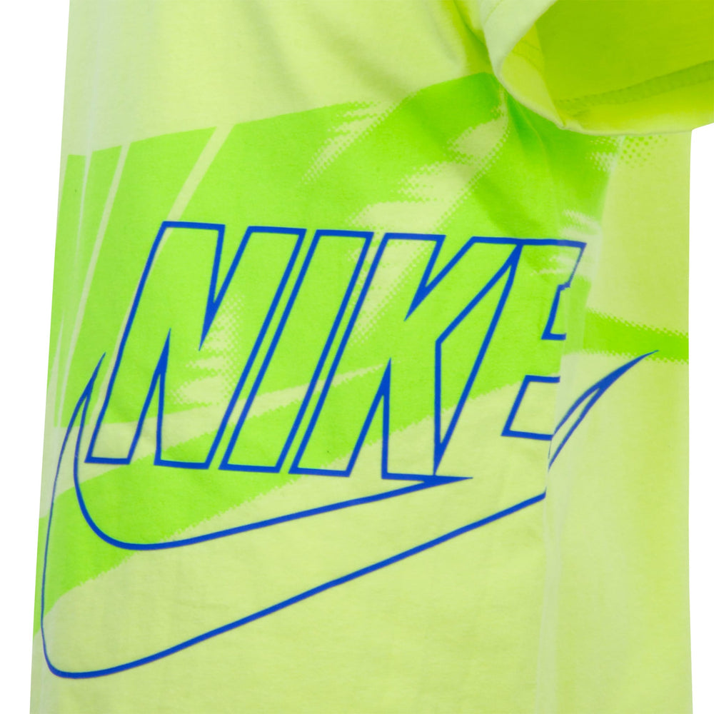 Kids can stay comfortable and stylish with this short-sleeve Nike. Made from breathable jersey fabric and featuring a cool graphic print on the front, it's perfect for workouts or everyday wear.