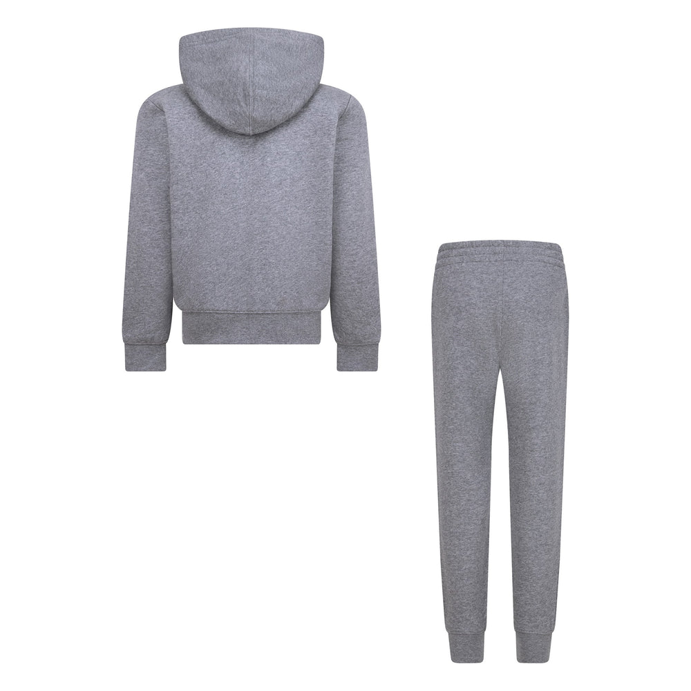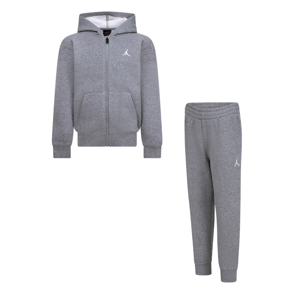 Made of soft cotton/poly fleece with a smooth outside and a soft inside, this 2-piece set from Jordan is an easy way to dress your little one for everyday play. The full-zip hoodie has a roomy cut for easy layering over a bodysuit or tee. The matching pants have a stretchy waistband for a comfy fit and the tapered legs with ribbed cuffs create a cozy, secure feel.