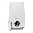Ultrasonic cool mist humidifier with intelligent humidistat that maintains desired humidity level for up to 28 hours continuous run time.