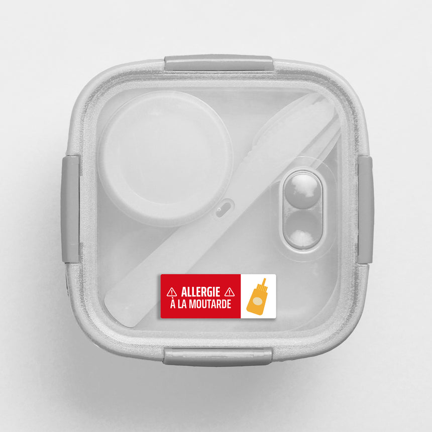 The Allergy Label Set contains 16 labels of the same size (2.6" x 1" / 6.6 x 2.6 cm) to identify various objects, from a container to a large backpack. Adhesive labels do not require ironing: simply peel off the stickers, apply them to the items to be identified, and wait 24 hours before exposing them to water, heat, or cold.