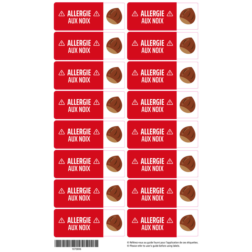 The Allergy Label Set contains 16 labels of the same size (2.6" x 1" / 6.6 x 2.6 cm) to identify various objects, from a container to a large backpack. Adhesive labels do not require ironing: simply peel off the stickers, apply them to the items to be identified, and wait 24 hours before exposing them to water, heat, or cold.