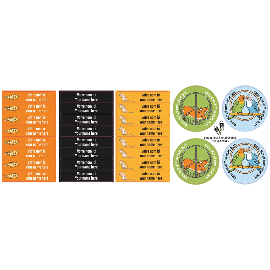 The Classic Edition is perfect for getting started with identification. It offers a range of convenient sizes for labeling everyday essentials, both at home and on the go. It contains 80 self-adhesive labels in various sizes, including 4 pairs for shoes, allowing children to easily identify the correct foot. Resistant to water, cold, heat, and steam, they are dishwasher, washing machine, dryer, microwave, freezer, and refrigerator safe. With no ironing required, simply apply them and wait 24 hours before exposing them to moisture or heat. Each label is personalized with a name and/or phone number printed on two lines of 16 characters.