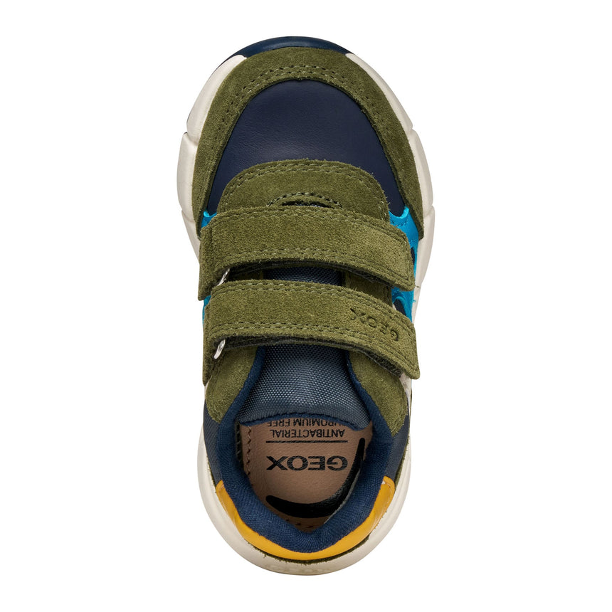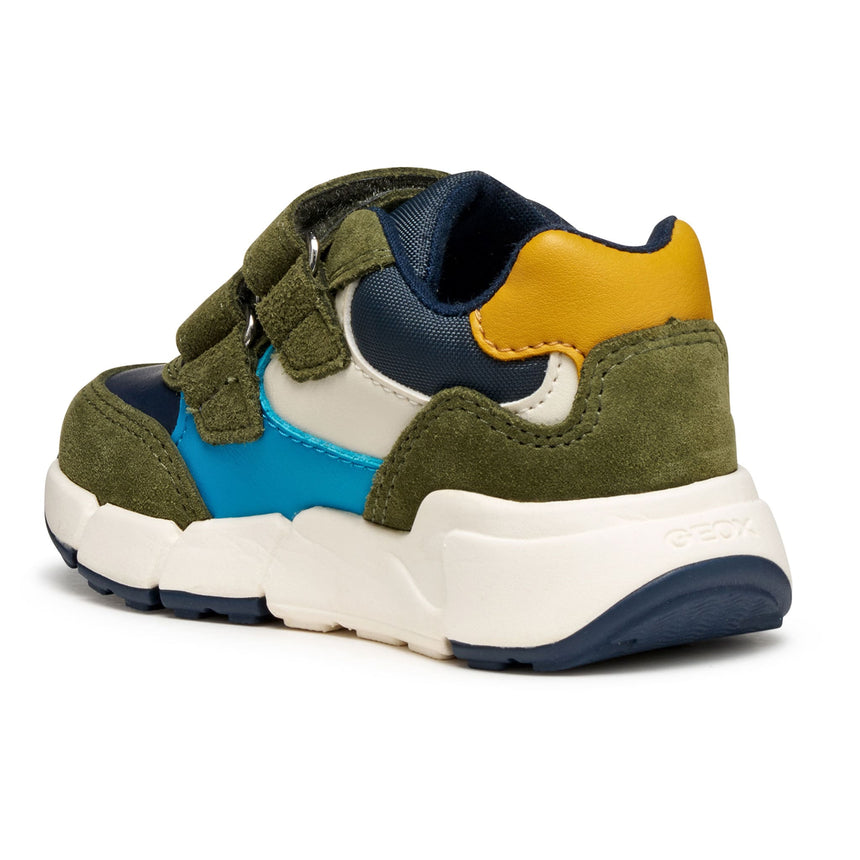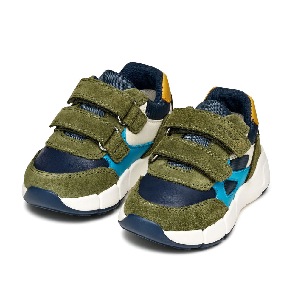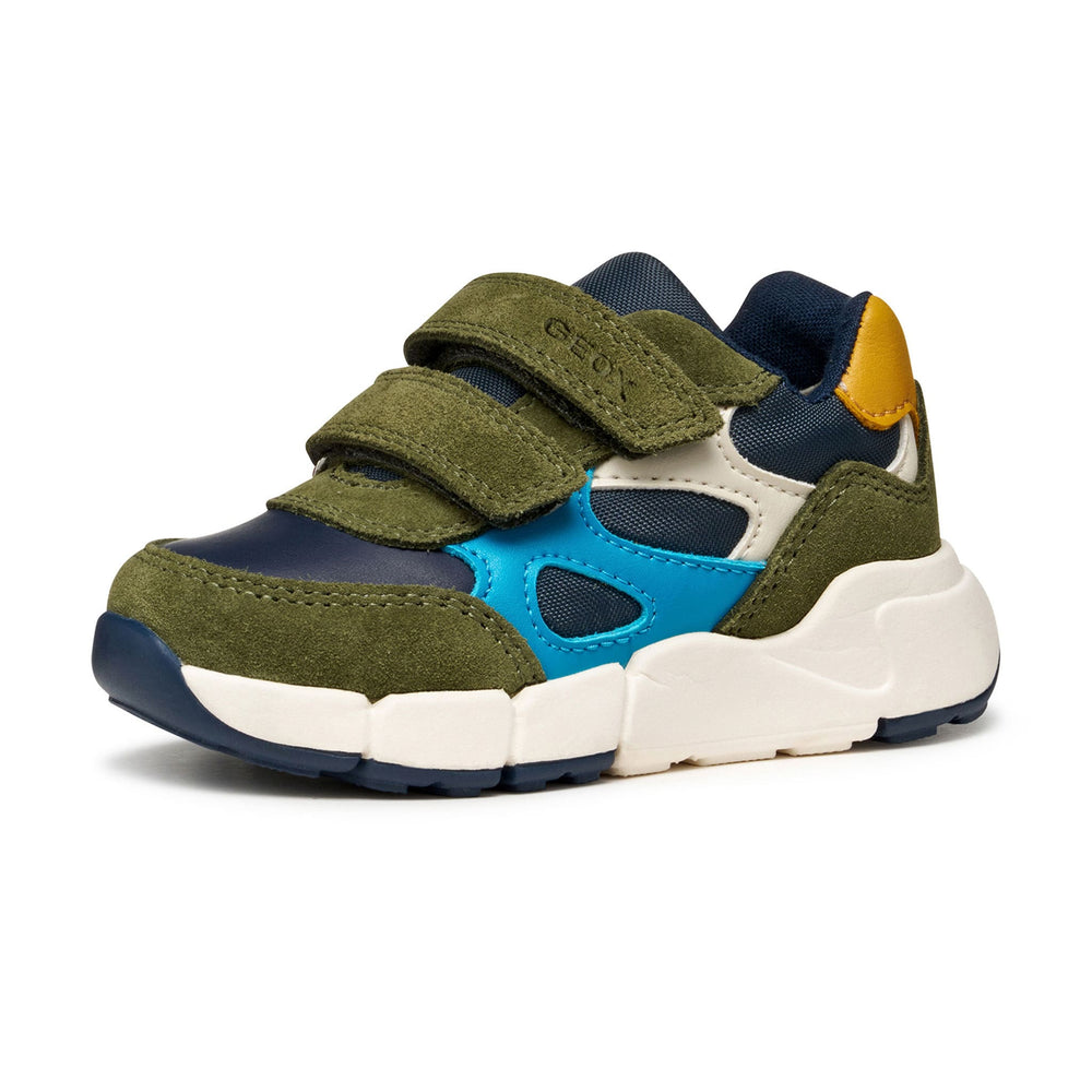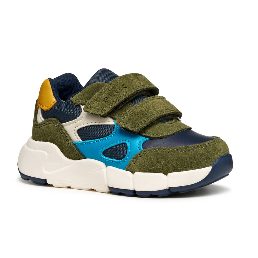Flexible lightweight sneaker for boys designed to bring complete comfort to toddlers’ days. This version of Flexyper Mini has been crafted from suede and a leather-effect material in a royal-blue and red colourway, and delivers softness and durability at the same time. Flexyper Mini offers the right amount of support and ease of movement for children’s day-to-day adventures.