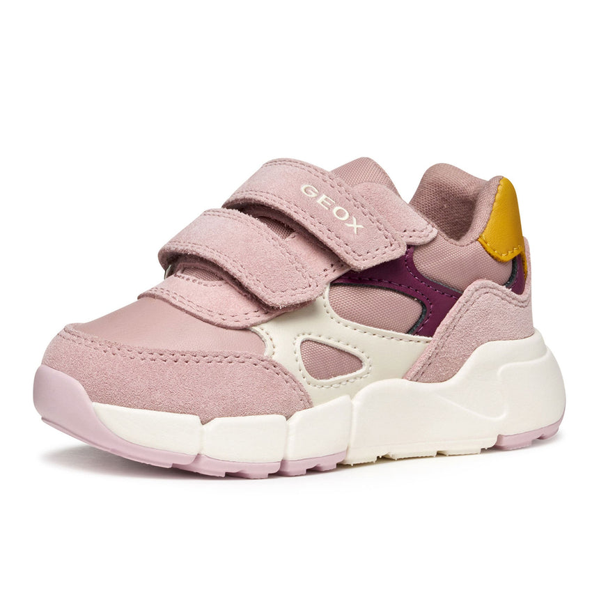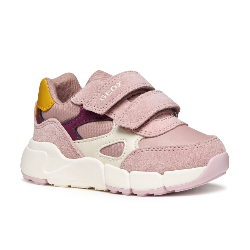 Flexible lightweight sneaker for boys designed to bring complete comfort to toddlers’ days. This version of Flexyper Mini has been crafted from suede and a leather-effect material in a royal-blue and red colourway, and delivers softness and durability at the same time. Flexyper Mini offers the right amount of support and ease of movement for children’s day-to-day adventures.