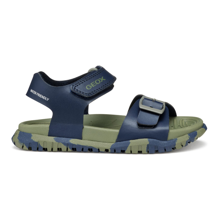 Comfortable lightweight open-toe sandal for boys with a modern dynamic design. This version of Fusbetto will prove to be a perfect partner for outdoor activities in warm weather. Crafted from a leather-effect material, this water-resistant flexible piece of footwear is easy to adjust and will provide children with all the freedom they need to run and play.