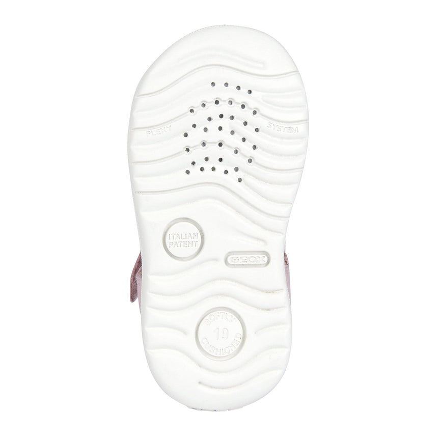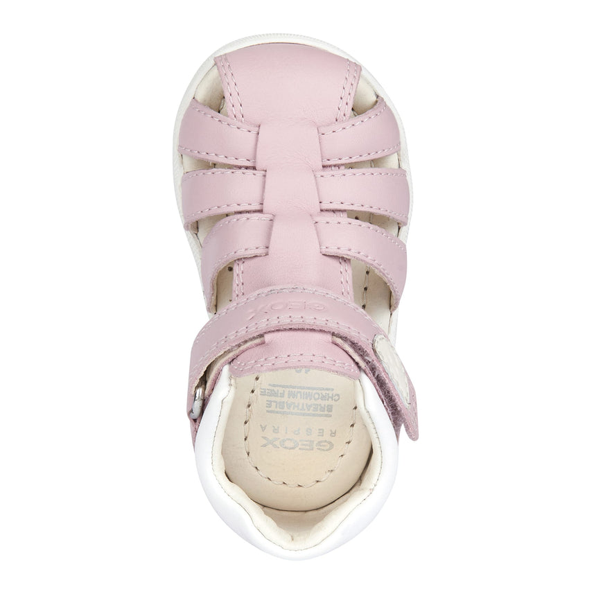 Lightweight breathable first-steps sandal for baby girls with a laid-back vibe and feminine feel. Rendered in a soft pink hue, Macchia boasts a supple fisherman's upper made from nappa and a leather-effect material. This soft comfortable piece of footwear protects little feet and allows them to flex in complete safety.