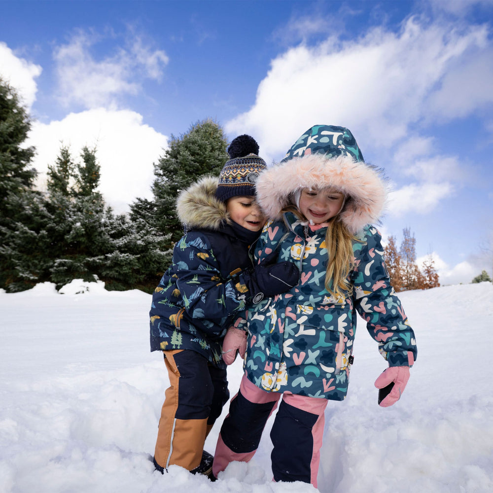 Stay warm and dry in temperatures as low as -30°C (-22°F) with our two-piece DISCOVER ski suit in navy blue. Designed to meet the demands of active littles and snow sports enthusiasts, this waterproof snowsuit is breathable, durable, abrasion-resistant, and dirt-repellent to provide maximum function with repeated use. The jacket features expandable sleeves to accommodate growing kids, a wind flap and chin guard to keep the elements out, a fleece lining for added warmth, and a detachable hood with removable faux fur trim. The pants are constructed with an elastic waistband, adjustable suspender straps, and Cordura®-reinforced panels at the knees, seat, and hems.