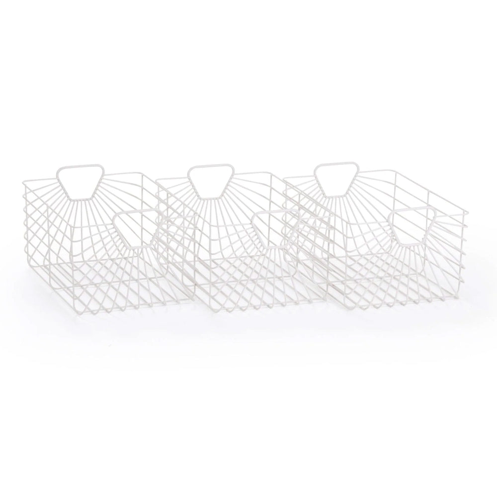 These convenient and removable storage baskets are the perfect addition to your nursery. Whether you are using them in your nursery to store easy-to-access items or pairing them to fit perfectly on your Central Park dresser shelves, these wire baskets can store anything from toys to nursery accessories. As a set of three, you can keep them together or spread them around the nursery as you please.