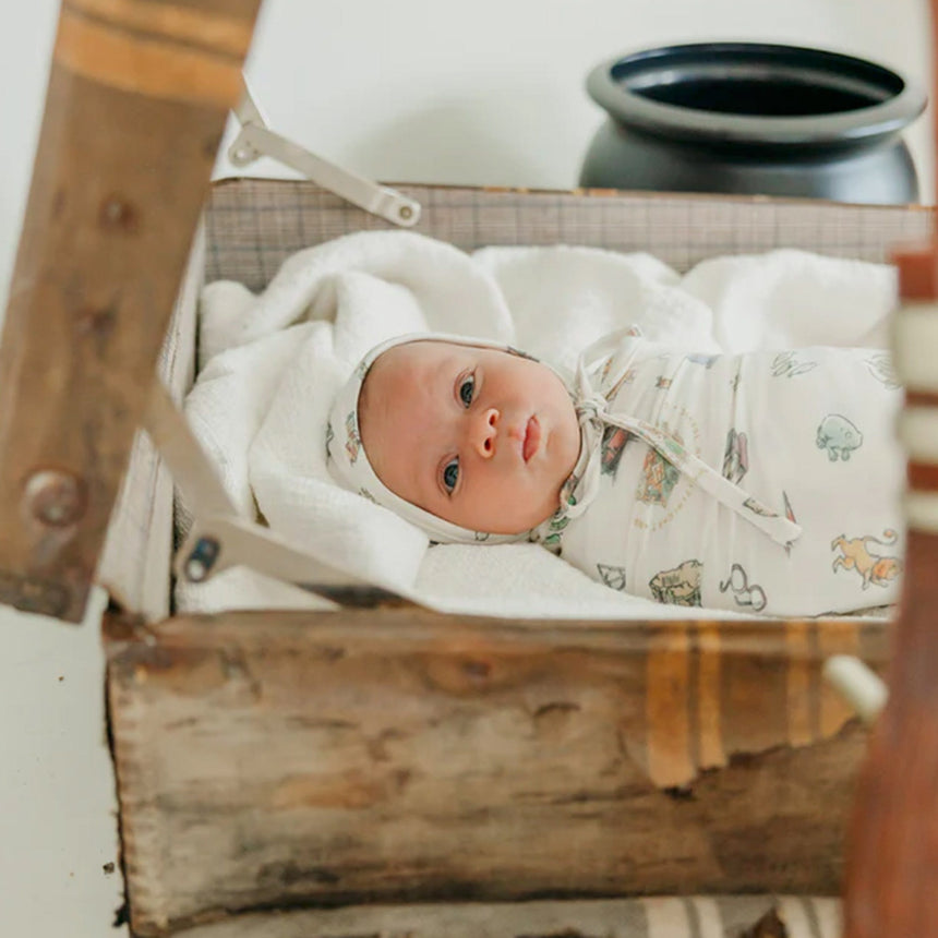 Meet the perfect swaddle. Yes, it does exist! Offering the optimal combination of durability and stretch, our swaddle keeps baby securely wrapped whiles offering just the right touch of wiggle room. It's generously size to grow with baby through toddlerhood.